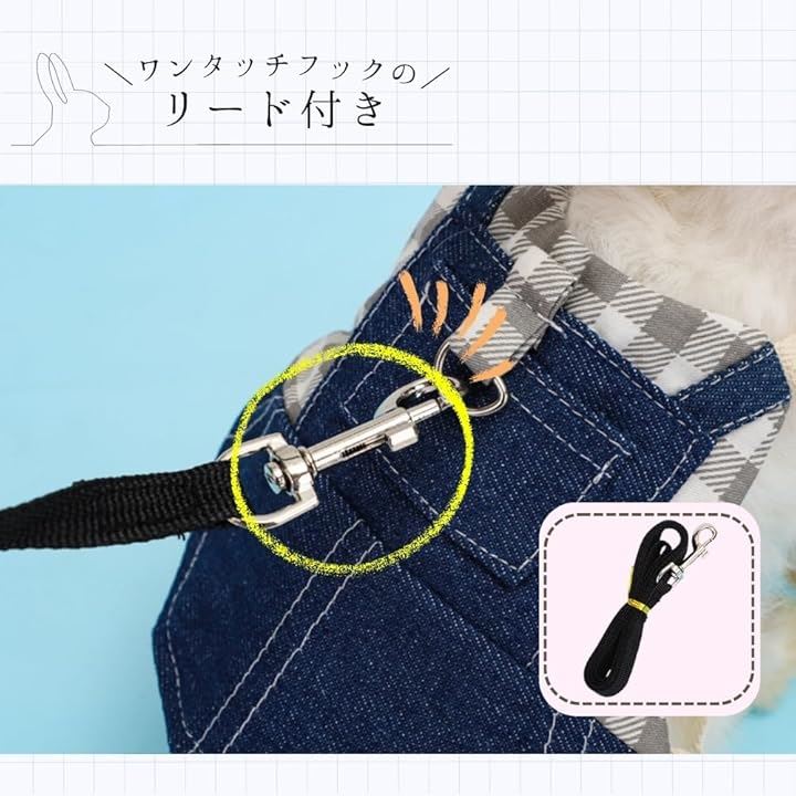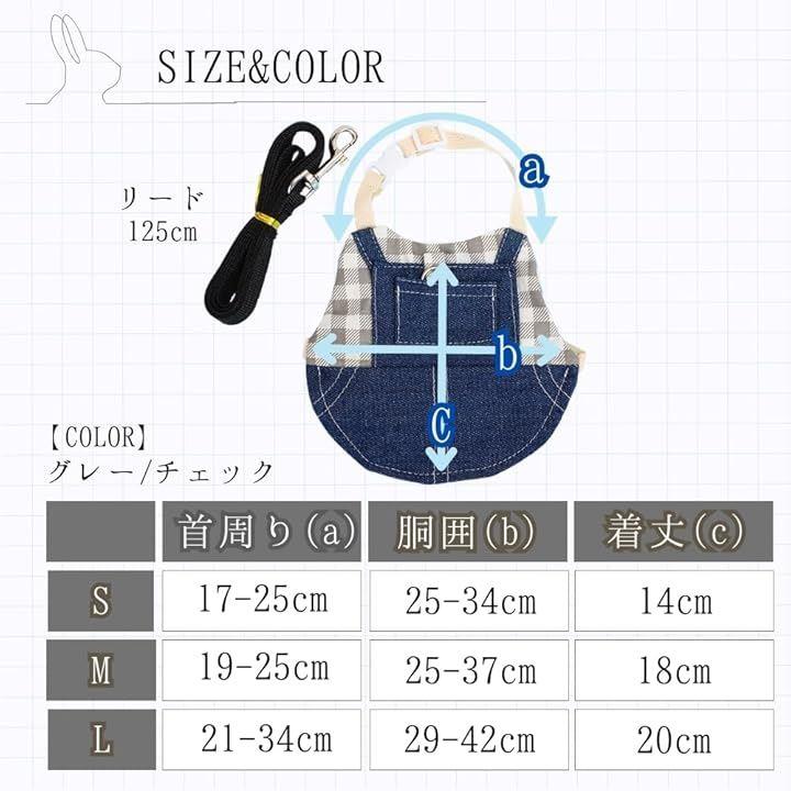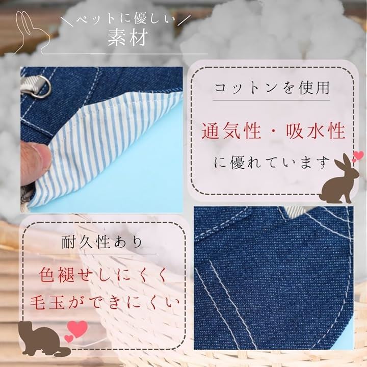ウサギ ハーネス 子猫 お散歩用 長さ125cmのリード付き お洋服