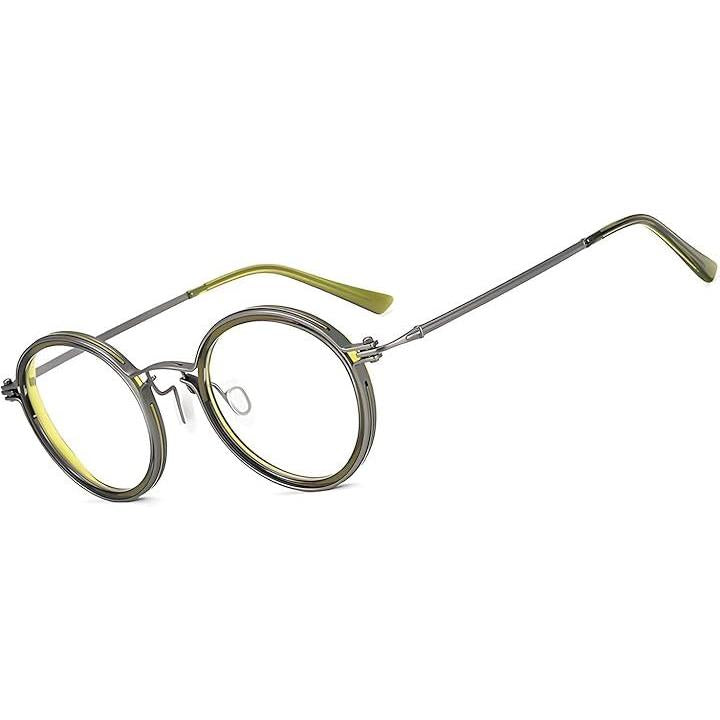 ブルーライトカット 透明フラットレンズ 丸伊達メガネ ラウンド型 メタル セル コンビネーションフレーム