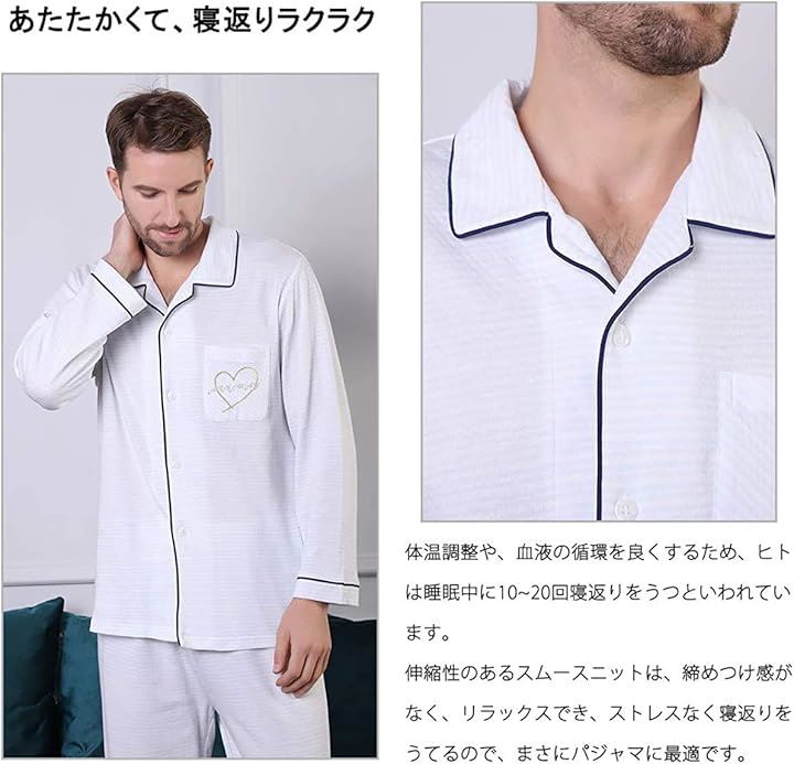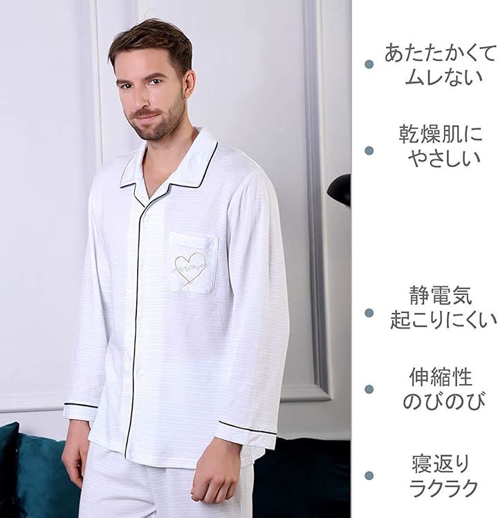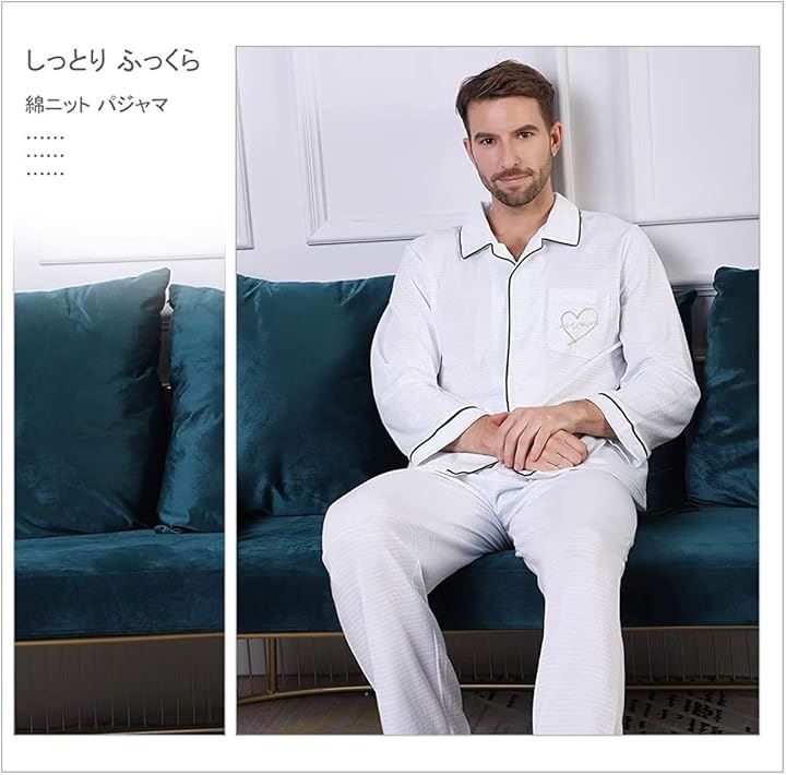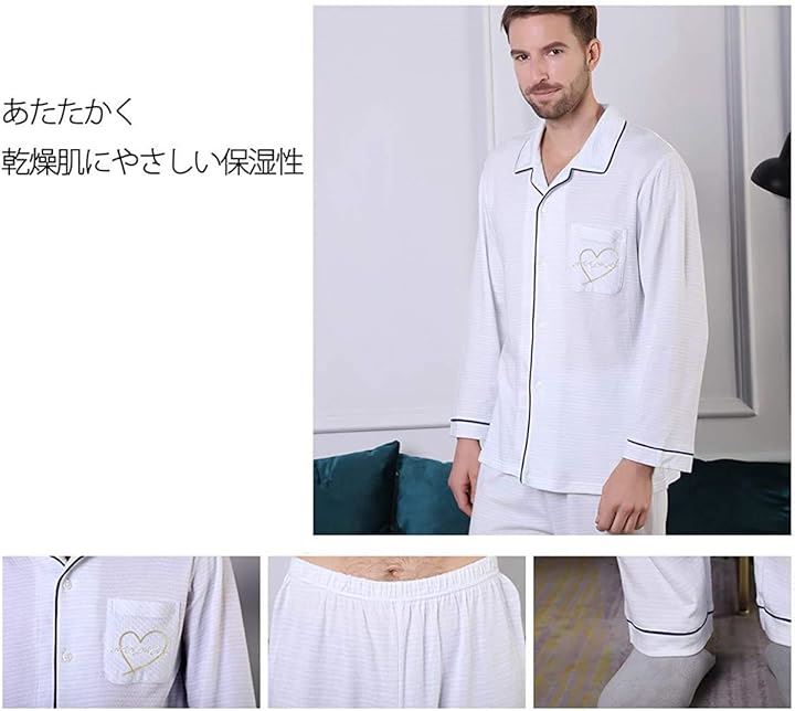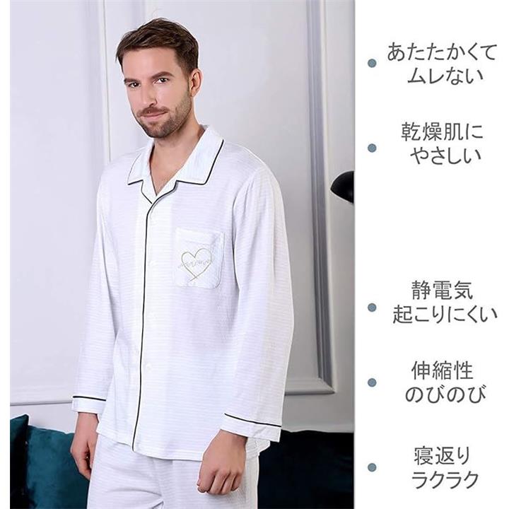 パジャマ 綿100% メンズ レディース オーガニックコットン ペア 夫婦 ルームウェア 肌に優しい 吸汗 通気 保温 長袖 上下セット 部屋着 春夏秋