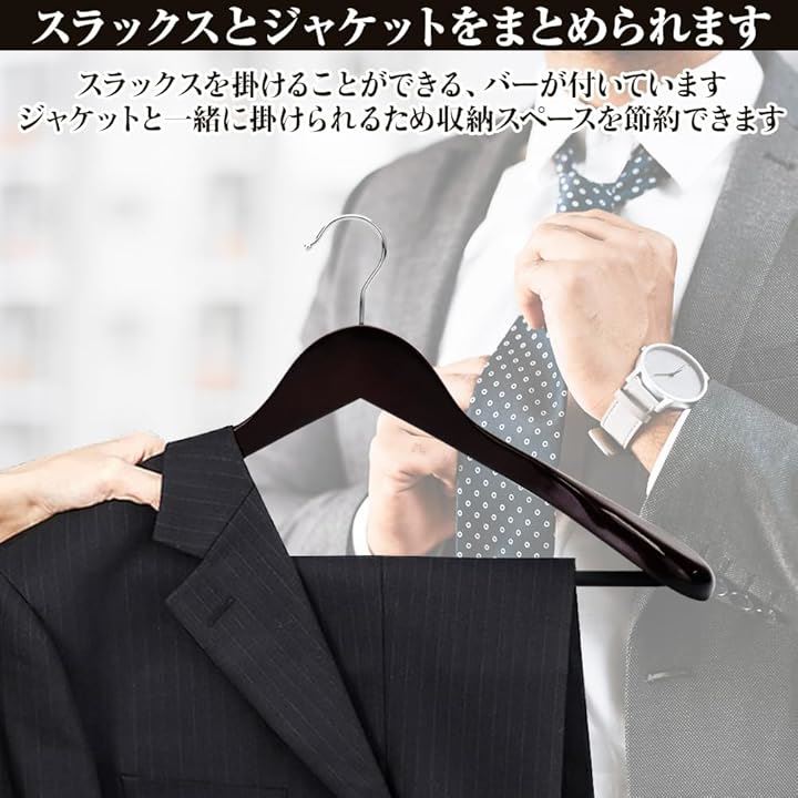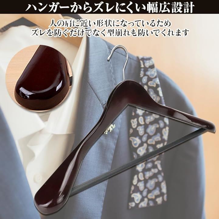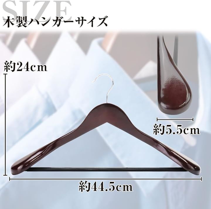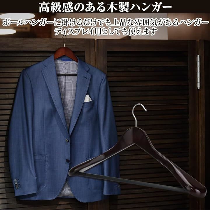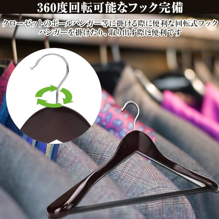 アンティーク調高級木製ハンガー 衣類掛け 型崩れ防止 幅広設計 360度回転 スーツ ブレザー