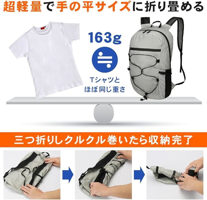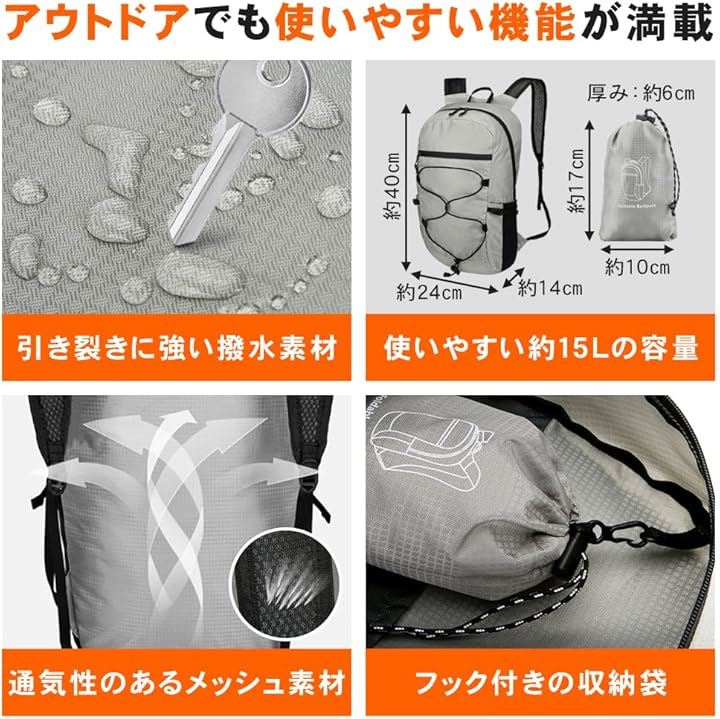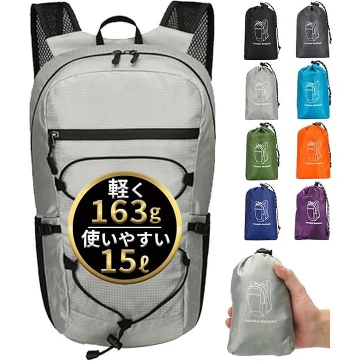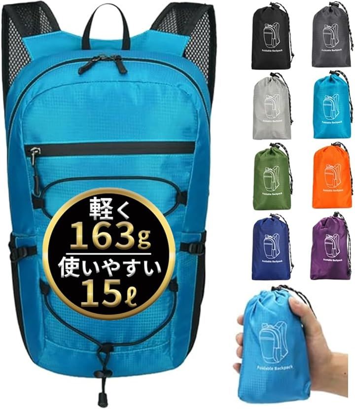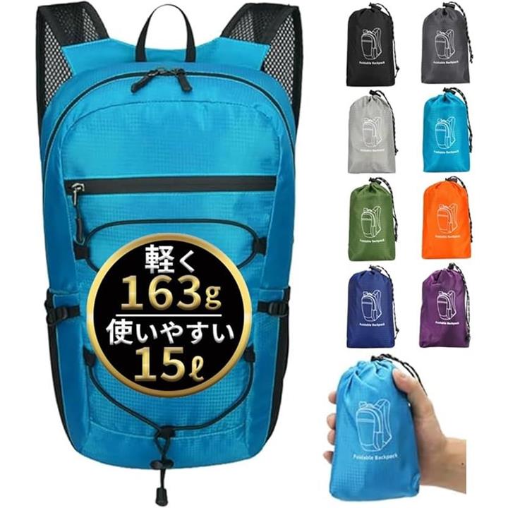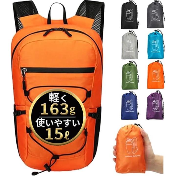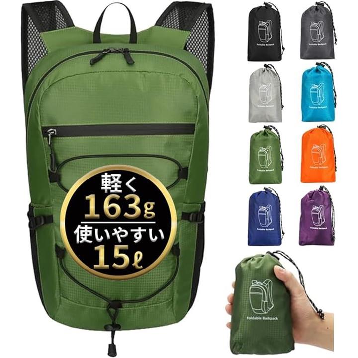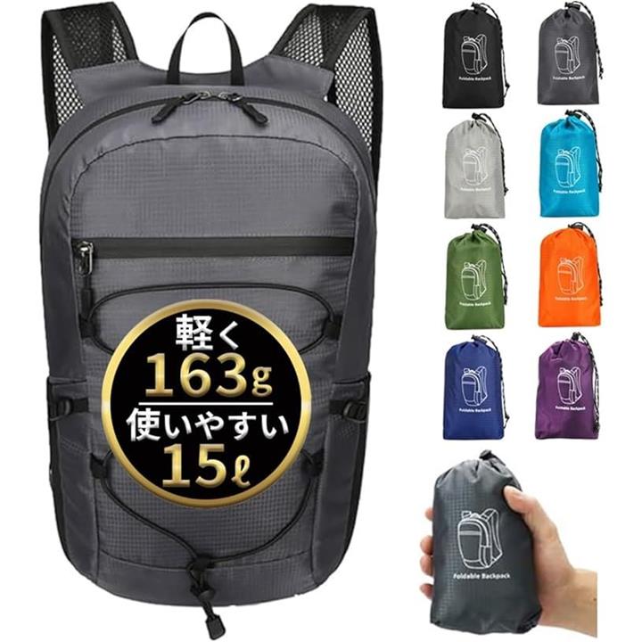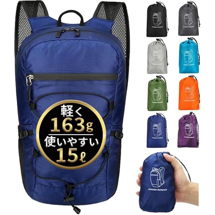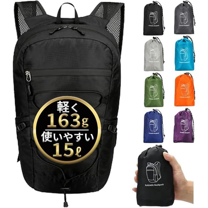 折り畳みリュック キャンパー監修 15L 軽量 収納袋付き 撥水 サブバッグ エコバッグ ナイロン 丈夫 人気