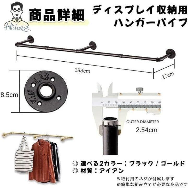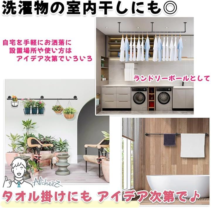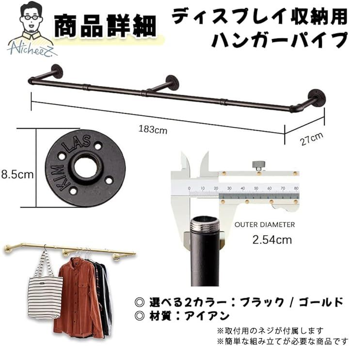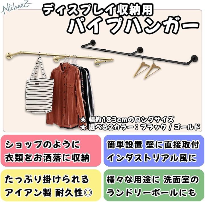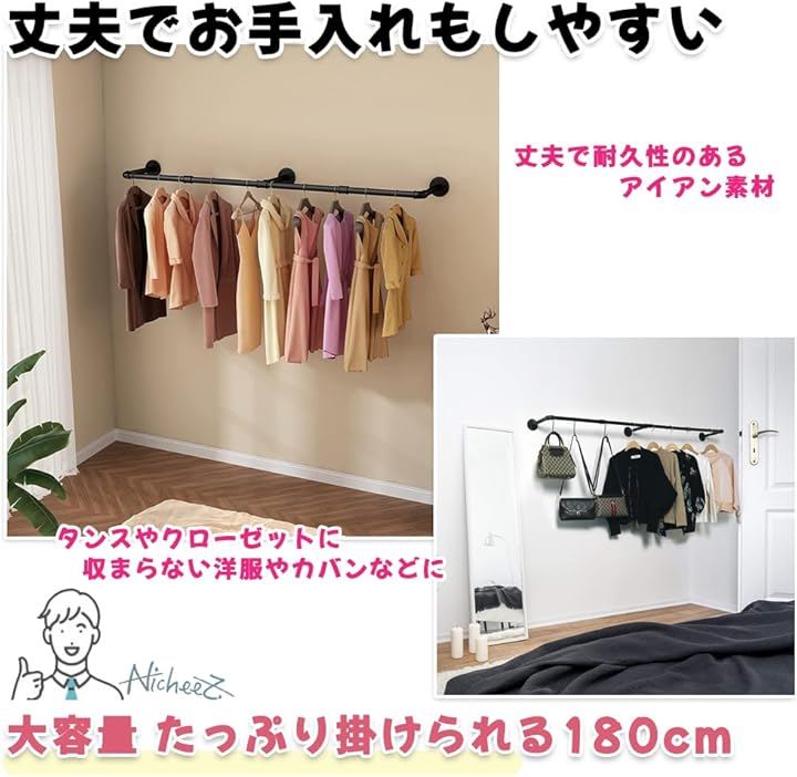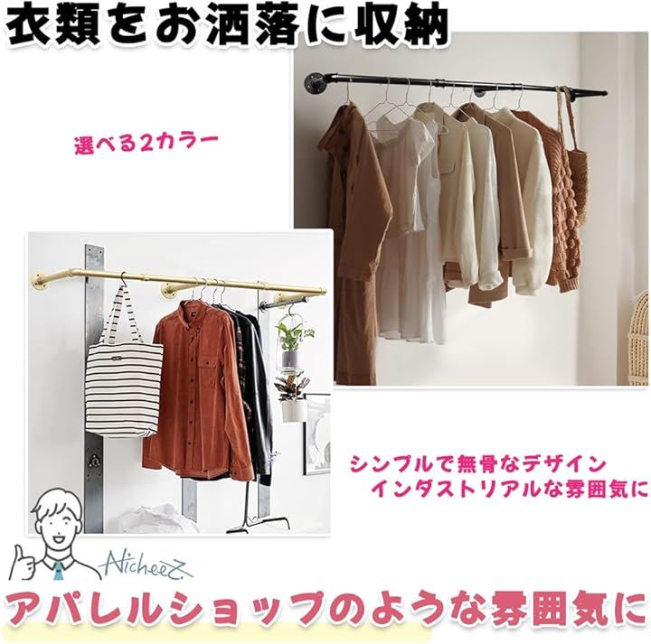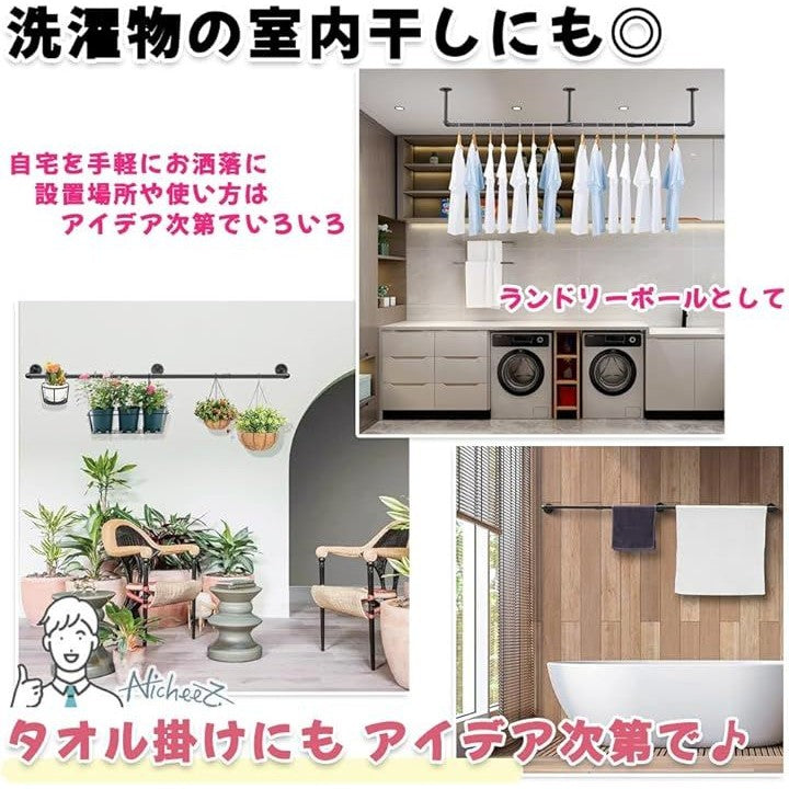 ハンガーパイプ オシャレな アイアン ラック 壁付け