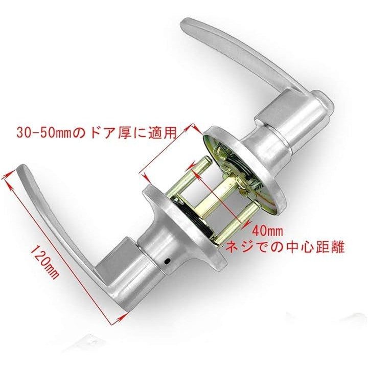 ドアノブ 室内 トイレ レバーハンドル 寝室 玄関 浴室に適用 亜鉛合金ハンドル 適用扉厚30-50mm ラッチは60mmあるいは70mmに調整可能
