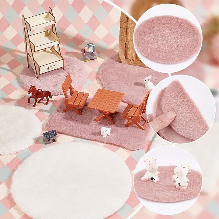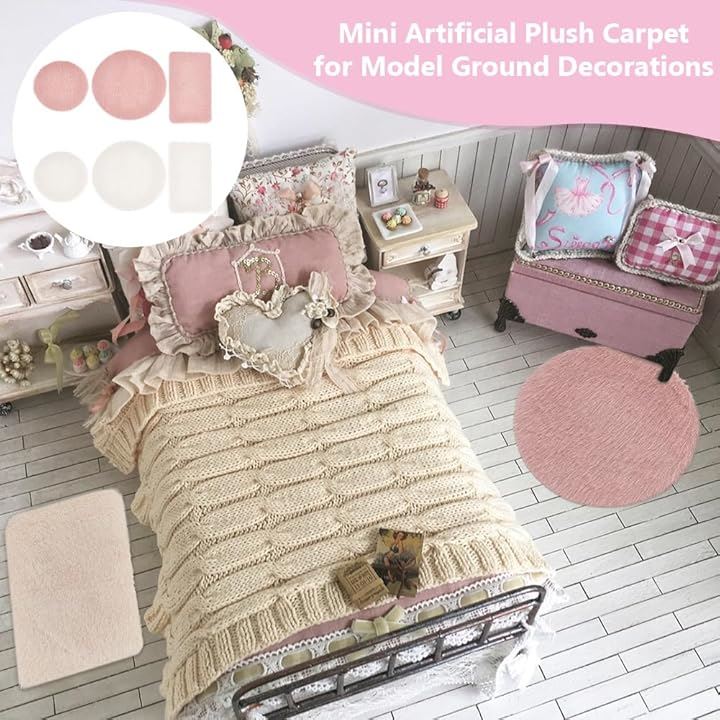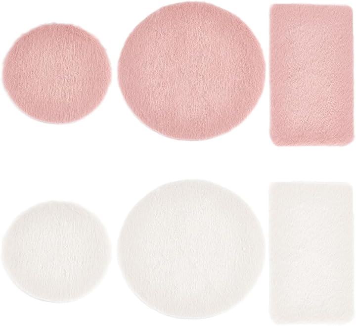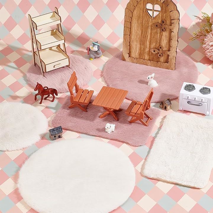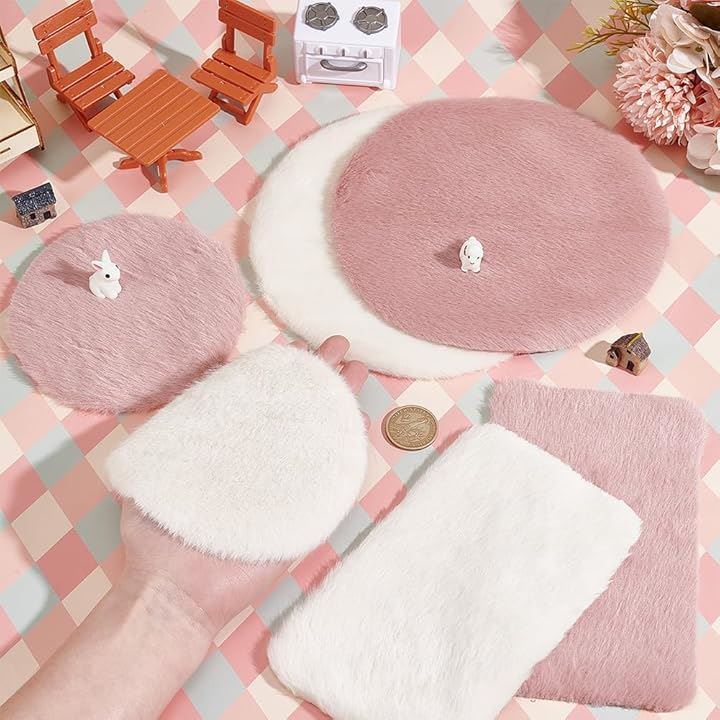 6点 ミニチュア 絨毯 カーペツト ドールハウス ピンク 白 丸 長方形 ミニチュアハウス 敷物 DIY 手作り 小物 装飾 人形家具 マイクロ