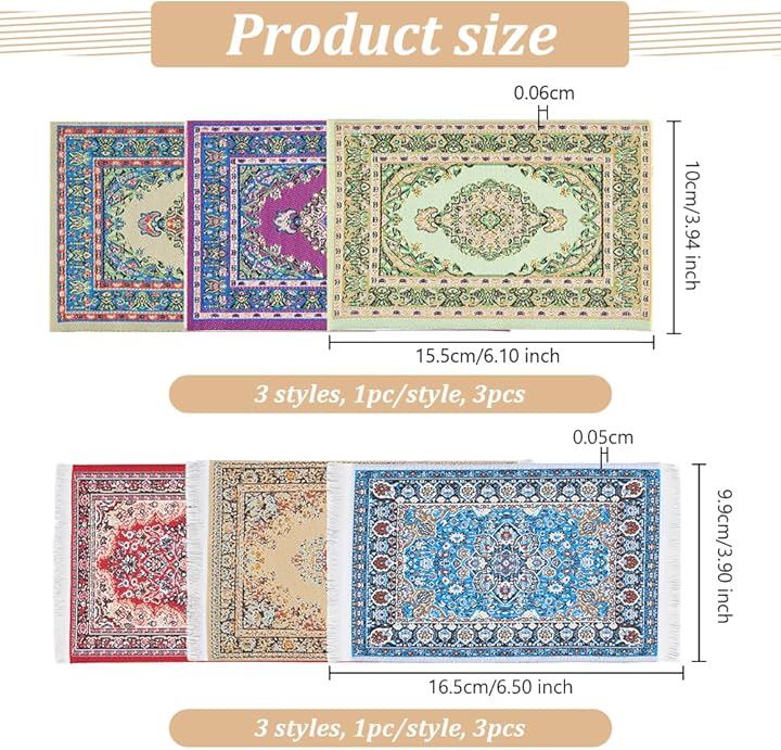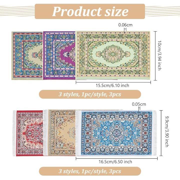 6点6色 ミニチュア 絨毯 カーペツト ドールハウス 長方形 織りラグ ミニチュアハウス 敷物 DIY 手作り 小物 装飾 人形家具 マイクロ