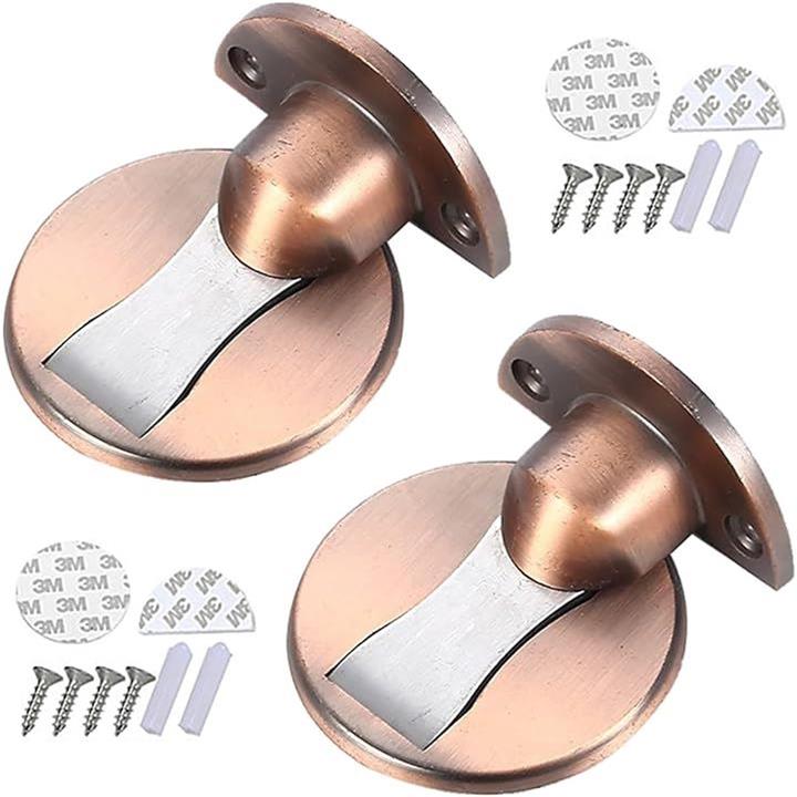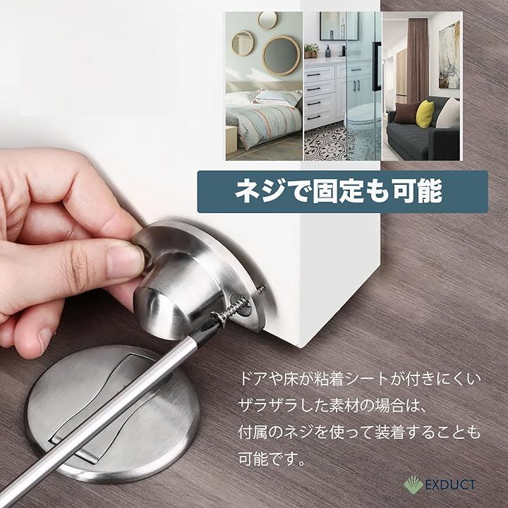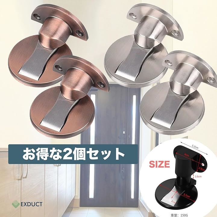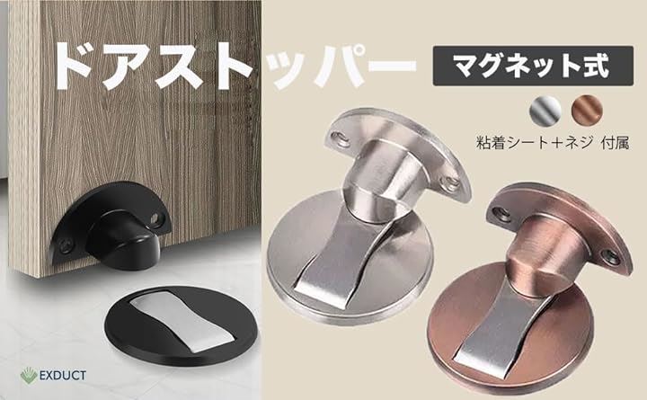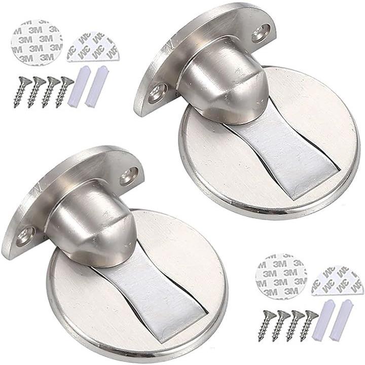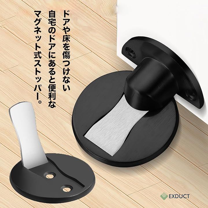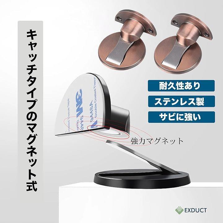 ドアストッパー マグネット式 キャッチタイプ 2個セット ドア止め ステンレス製 設置用ネジとシール付き 磁石固定 扉止め 建具