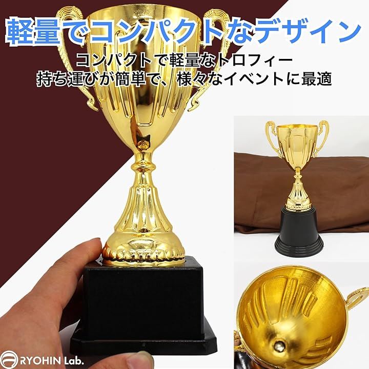 良品ラボ トロフィー カップ ゴールド 金色 スポーツ 大会 ゴルフ コンペ 賞品 記念品