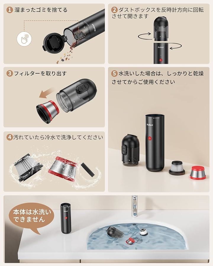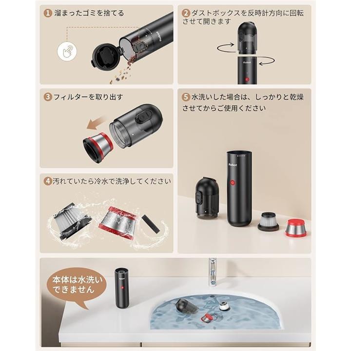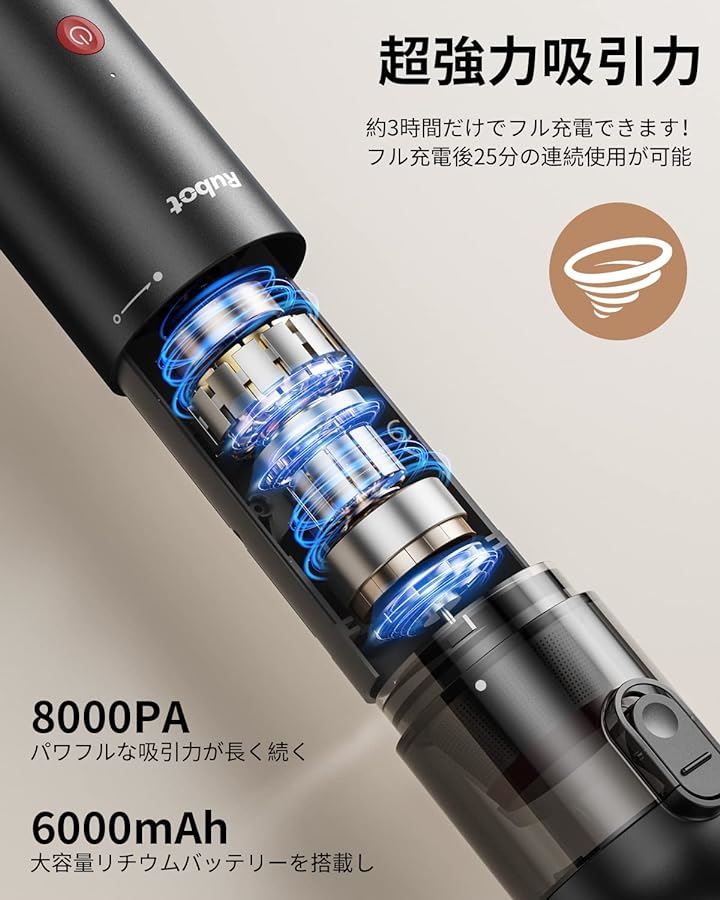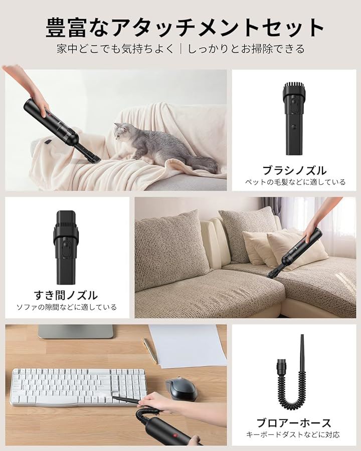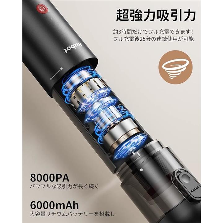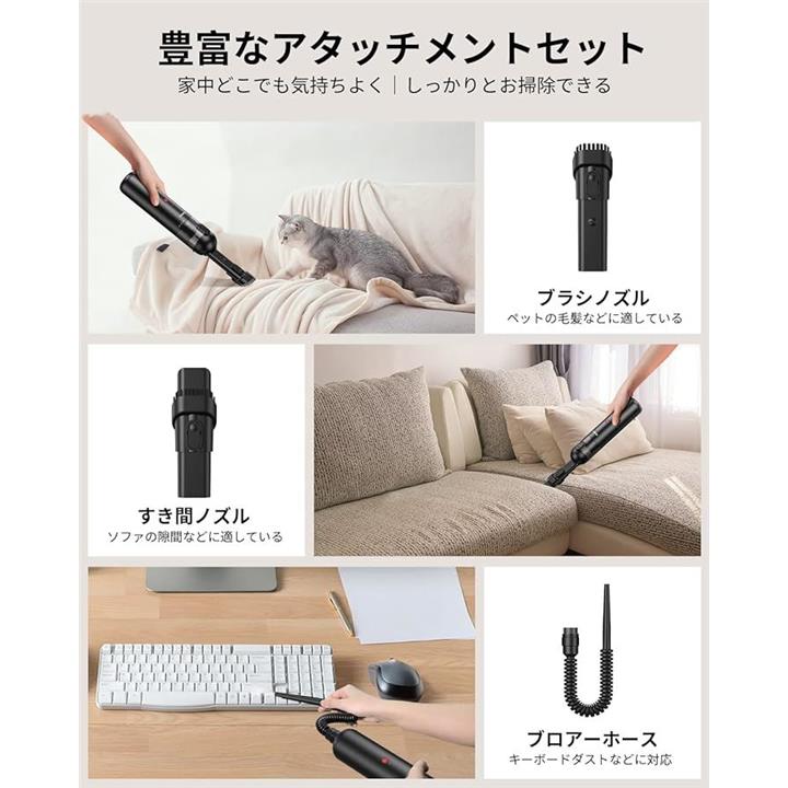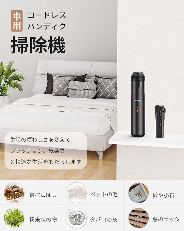 UBOT ハンディクリーナー 車用掃除機 10000PA 強力吸引 ハンディ掃除機 コードレス ミニ掃除機 低騒音 多機能 usb充電 軽量 日本語取扱説明書 P05
