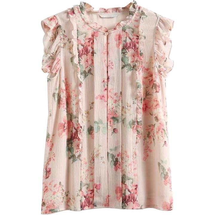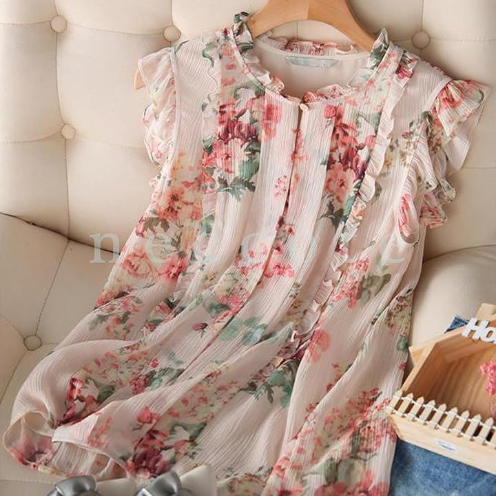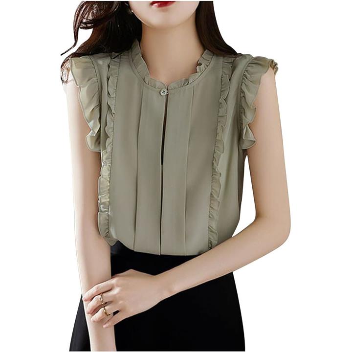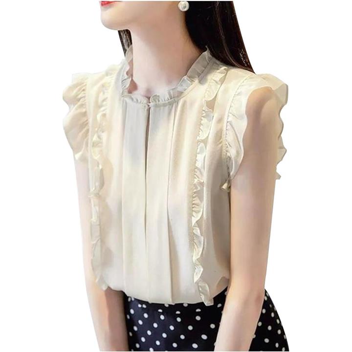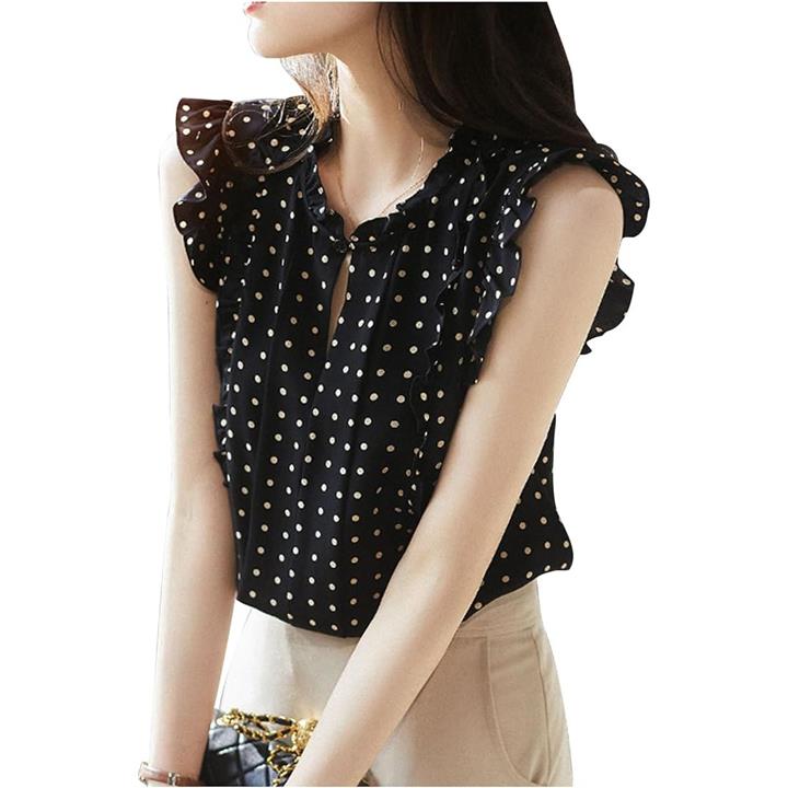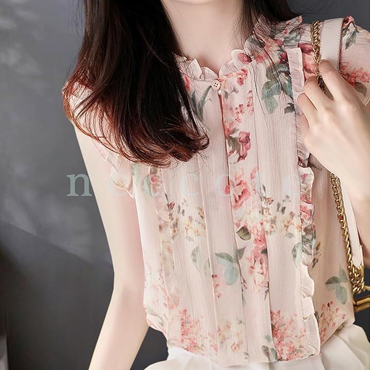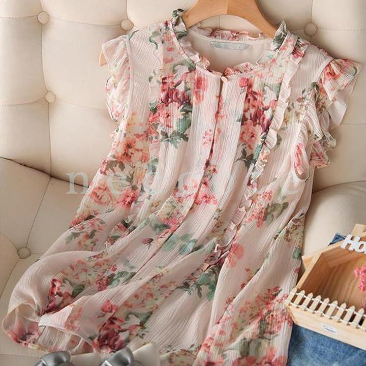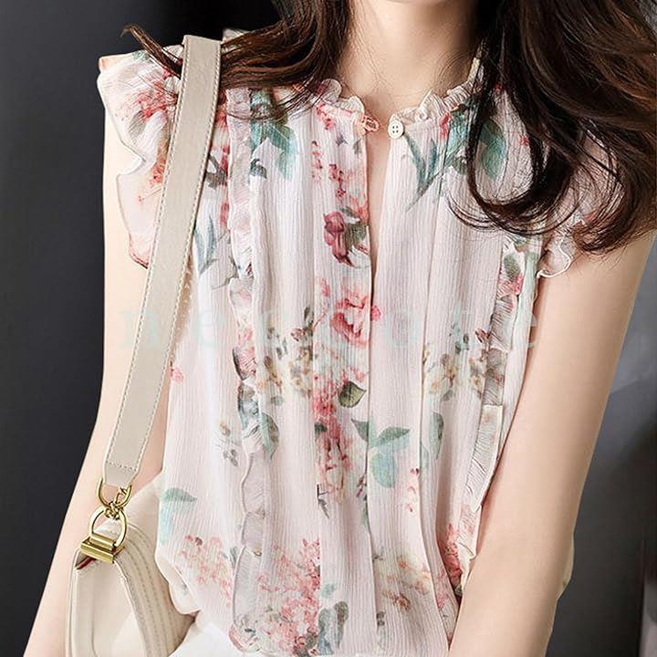 レディース ブラウス フリルブラウス カットソー オケージョン フリル袖 シアー シフォン ノースリーブ 半袖