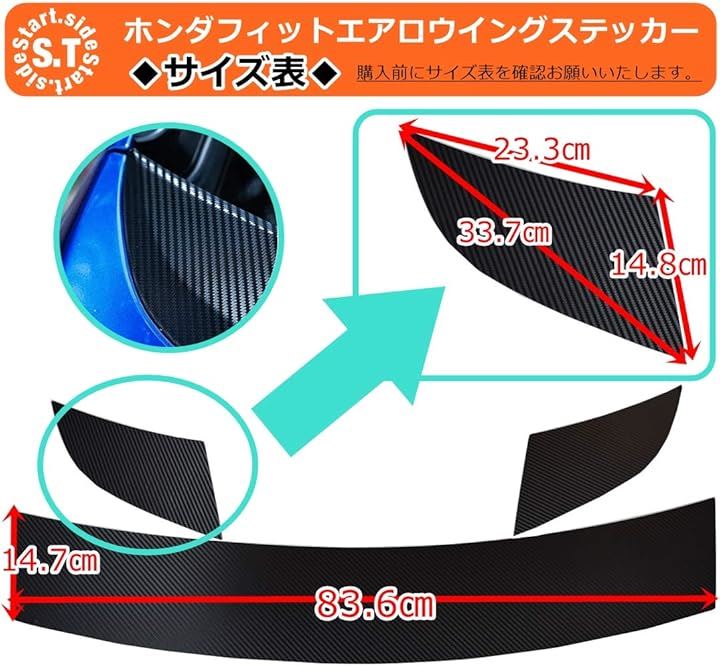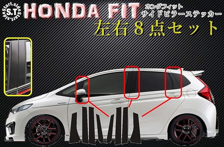 スタートサイド ホンダ車 対応 FIT フィット ハイブリッド サイドピラーカーボン調 ステッカー GK系 GP系 2014-2018 エアロウイング 2点セット