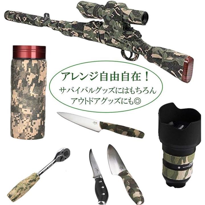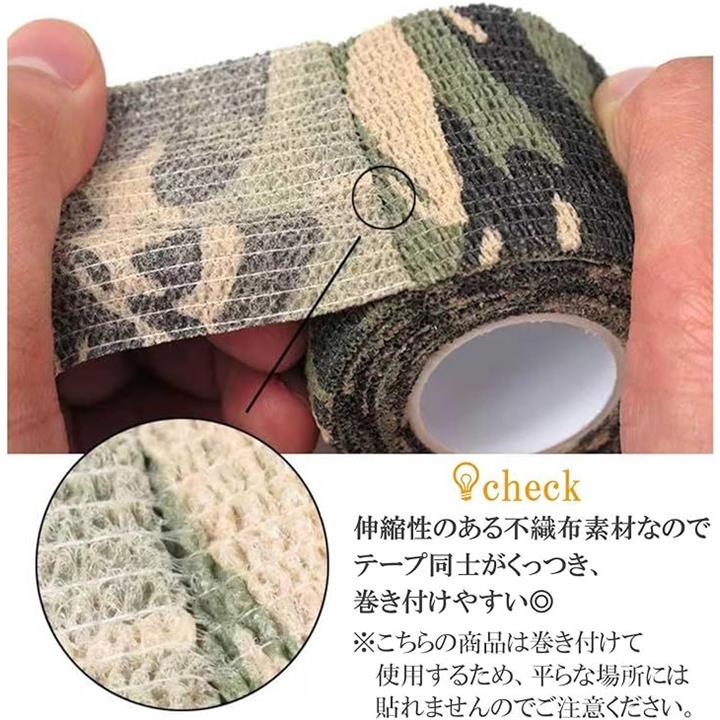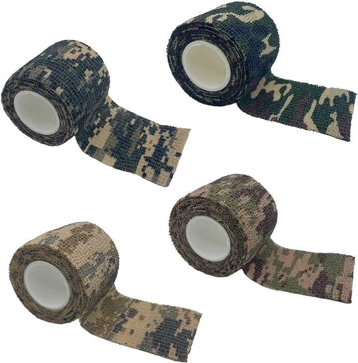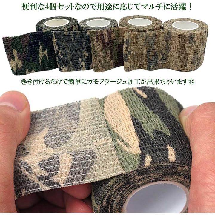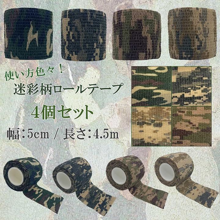 迷彩 テープ 4個セット 5cm幅 長さ4.5m カモフラージュ 多機能 包帯 伸縮 滑り止め サバゲー カメラ
