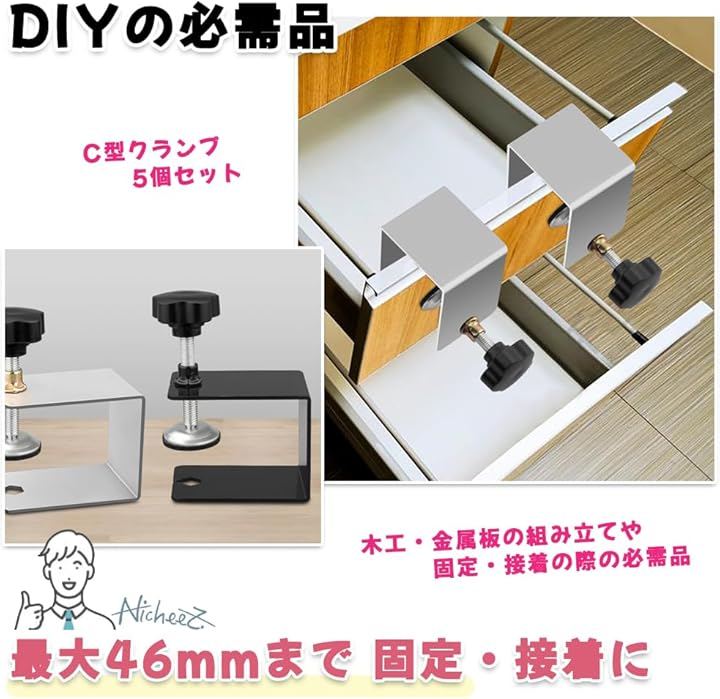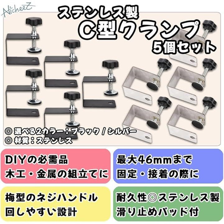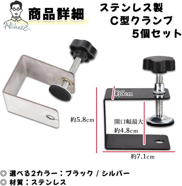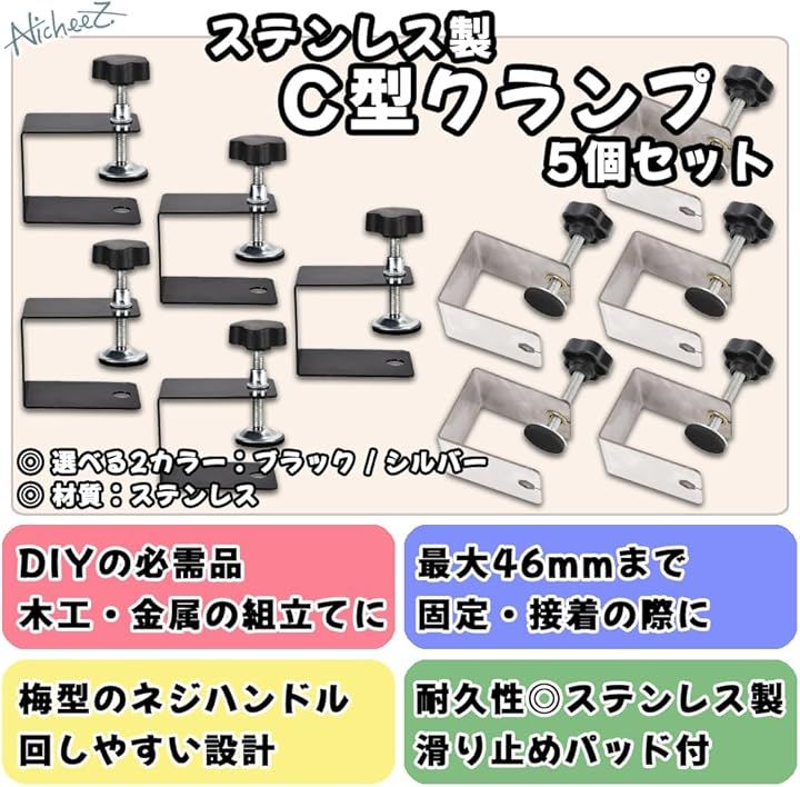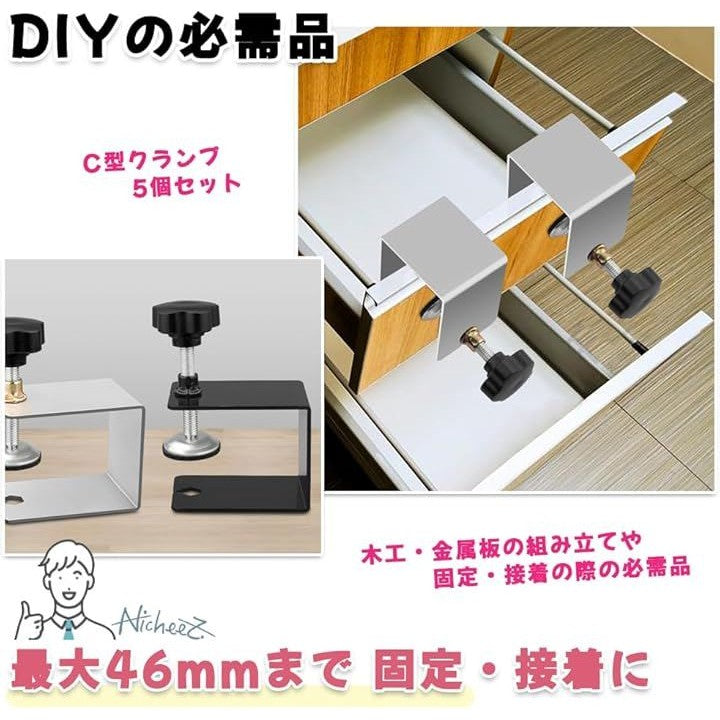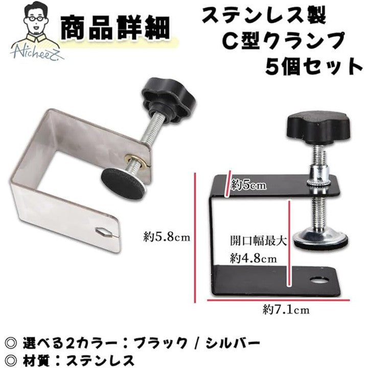 c型 クランプ ブラケット コの字 キャビネット 固定 留め金具 5個セット