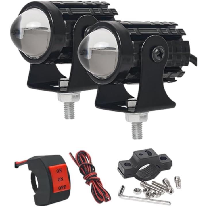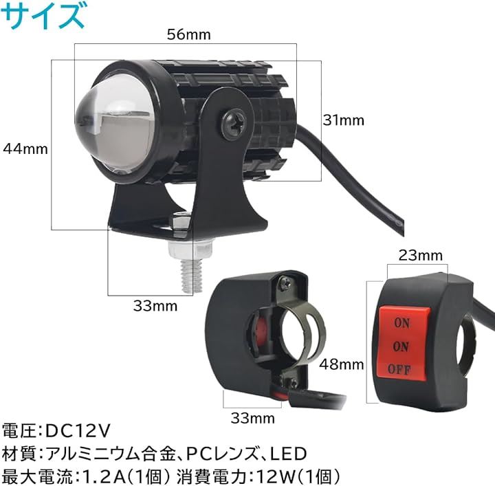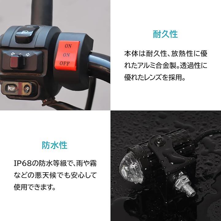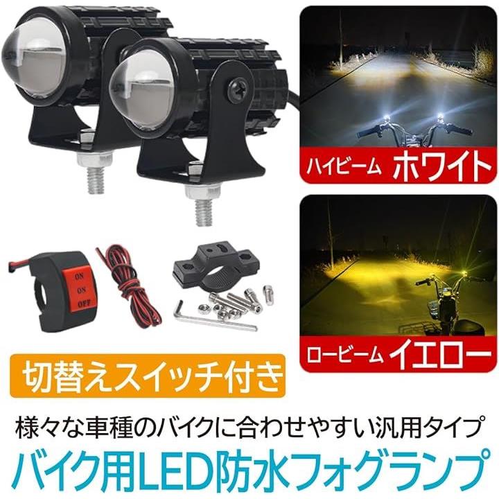 バイク用LED防水フォグランプ スイッチ付き ハイビーム ホワイト ロービームイエロー切替可能