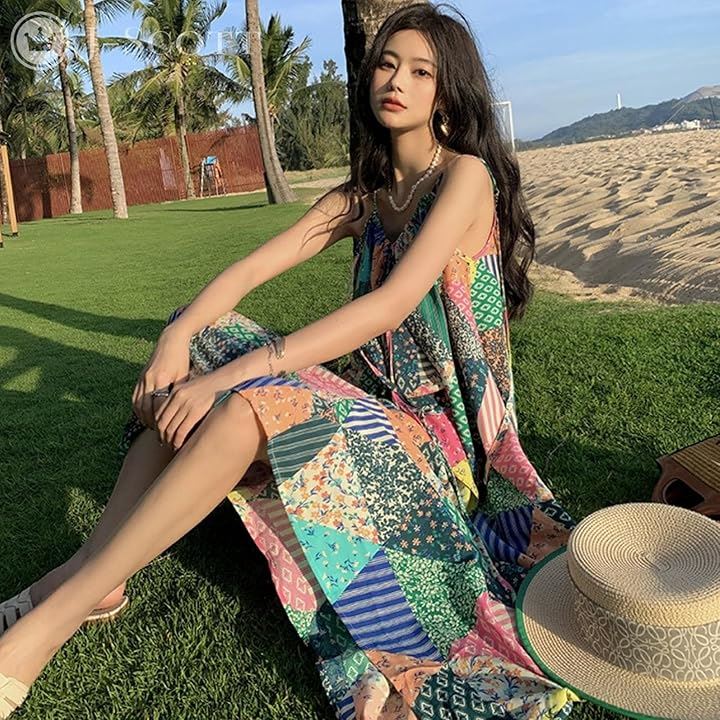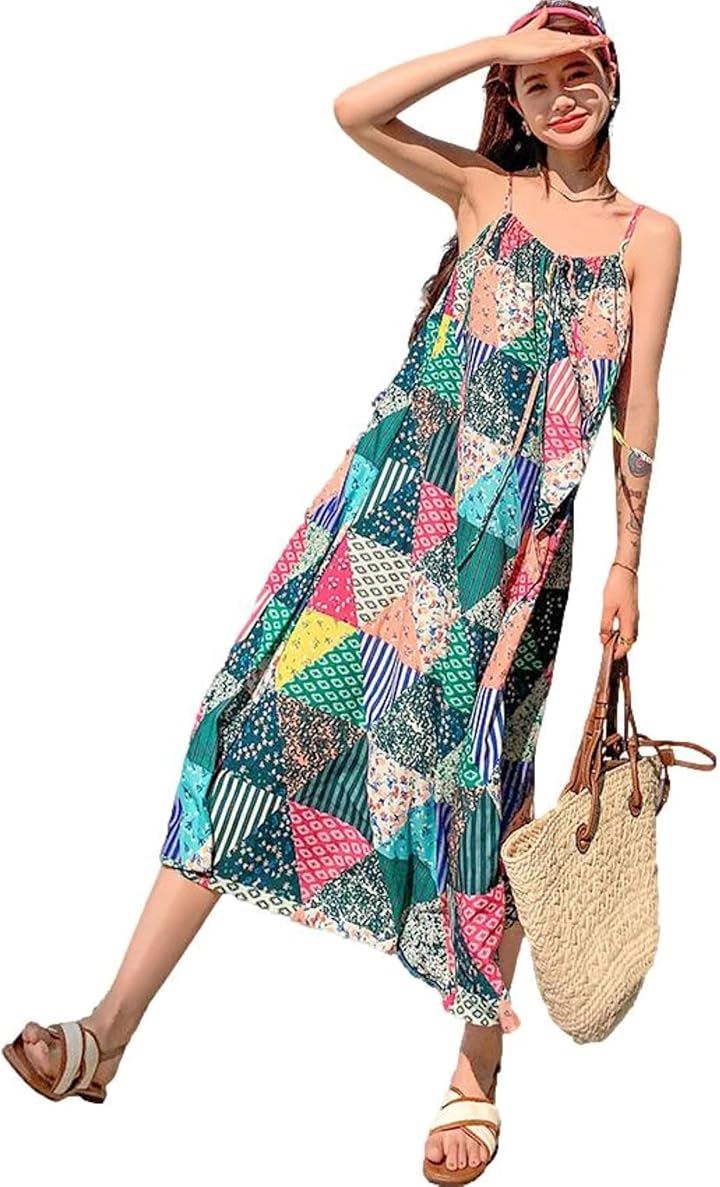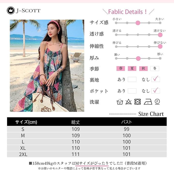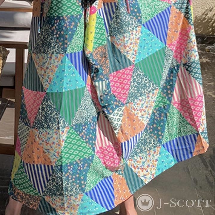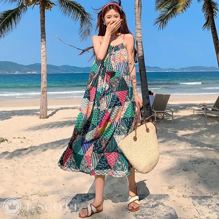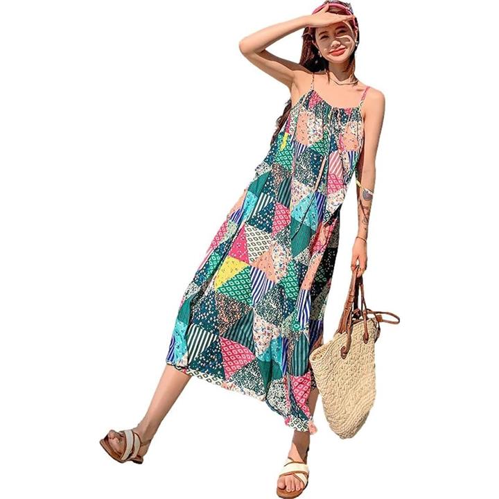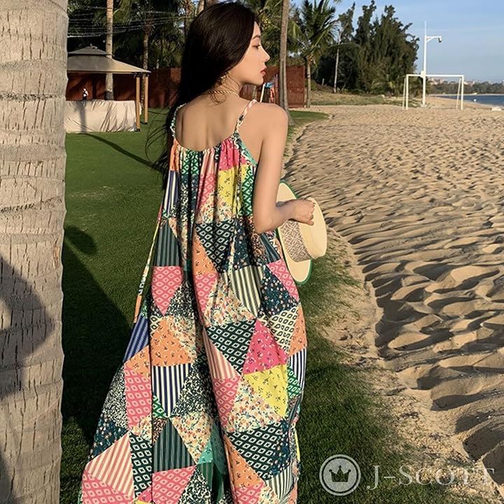 ワンピース レディース ロング キャミソール Aライン リゾート パッチワークプリント JS144