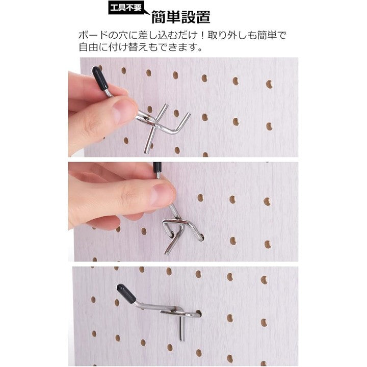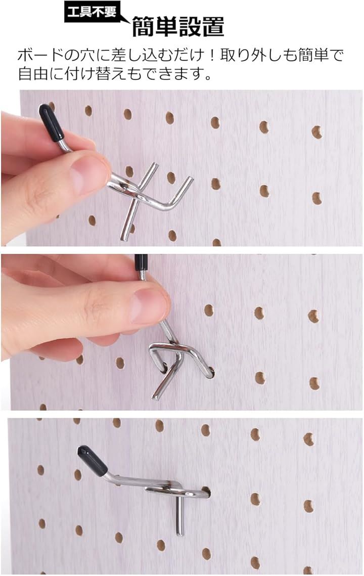 「取り付け方法」取り付け方法はパンチングボードの穴に合わせてひっかけるだけ。
