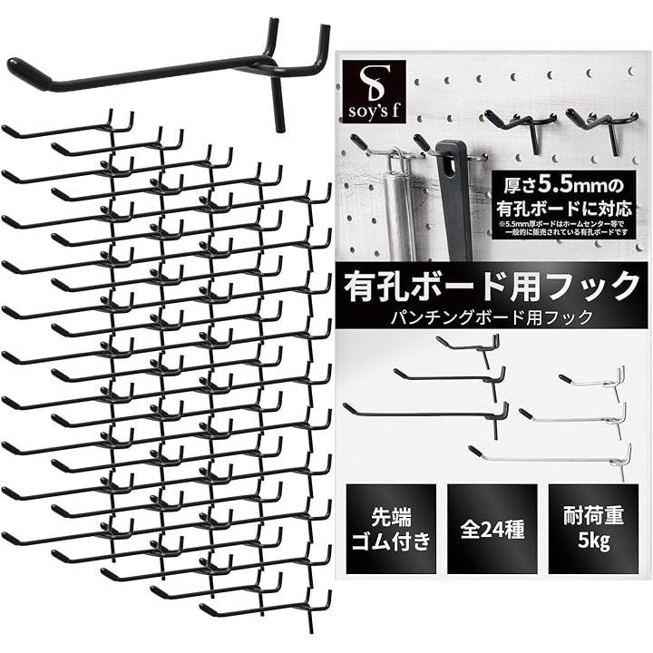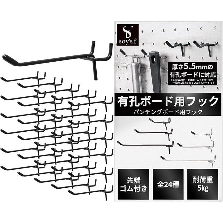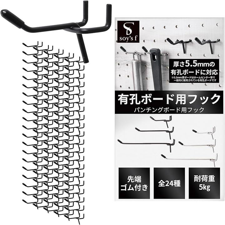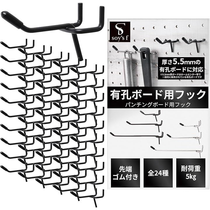 有孔ボード フック パンチングボード ペグボード ボード厚5.5mm 用 穴ピッチ25mm 穴径5mm ゴム付き 固定 止め 金具 穴あき ボード |