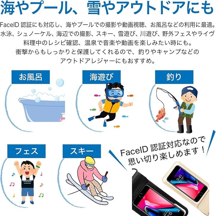 スマホ 防水ケース 7.0インチ IPX8認定 FaceID認証 iphone 風呂 海