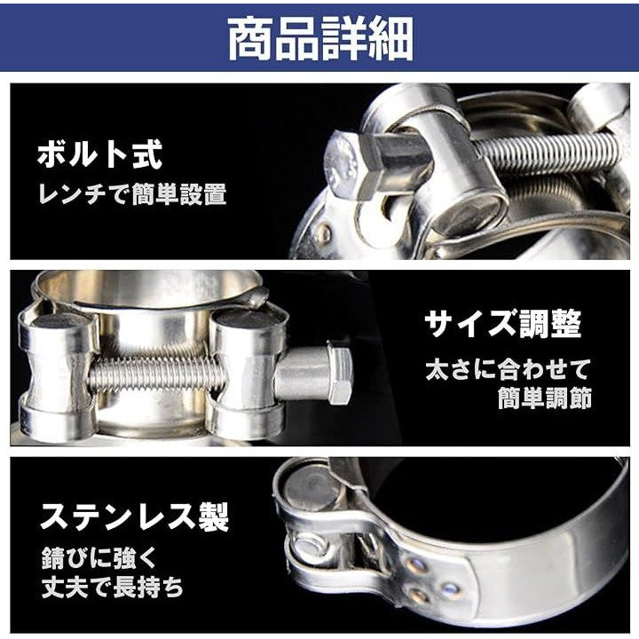 Tボルトクランプ 5個セット マフラーバンド ホース ステンレスマフラークランプ インタークーラークランプ