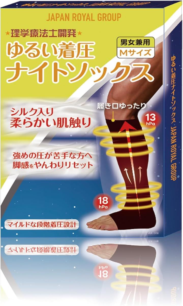 ナイトソックス メンズ レディース 男女兼用 シルク混 靴下 ハイソックス ストッキング つま先なし レッグウォーマー オープントゥー 夜用 寝る時 25センチから27センチ Mサイズ