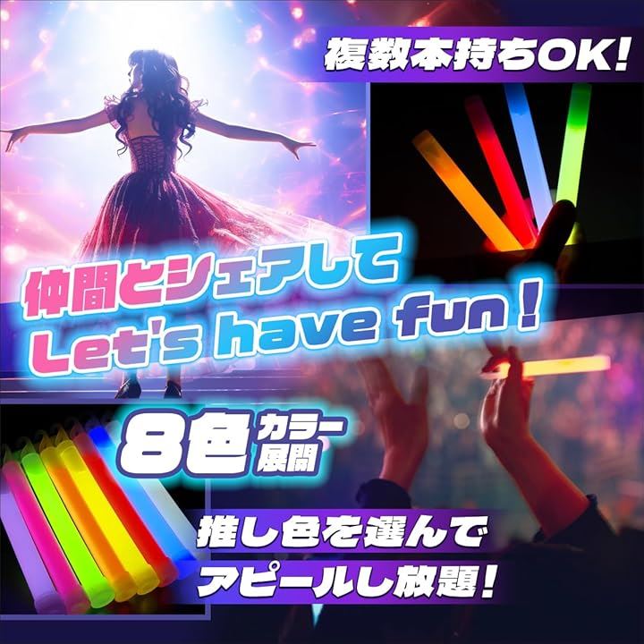 ペンライト ケミカルライト コンサート ライブ 光る 長時間発光 8色ランダム
