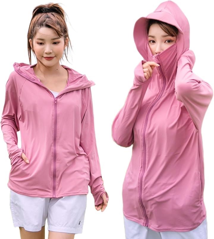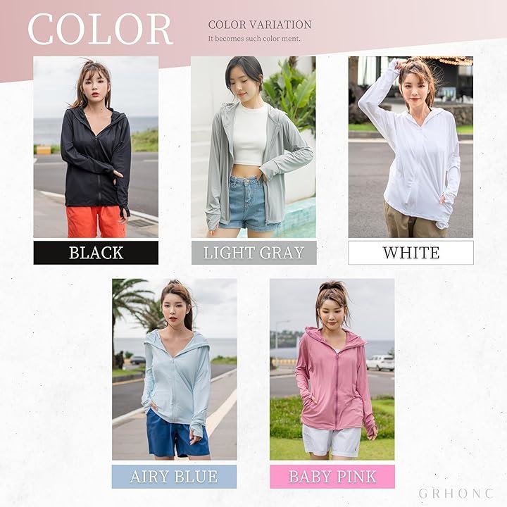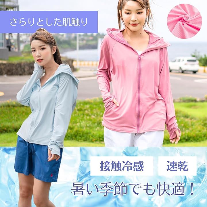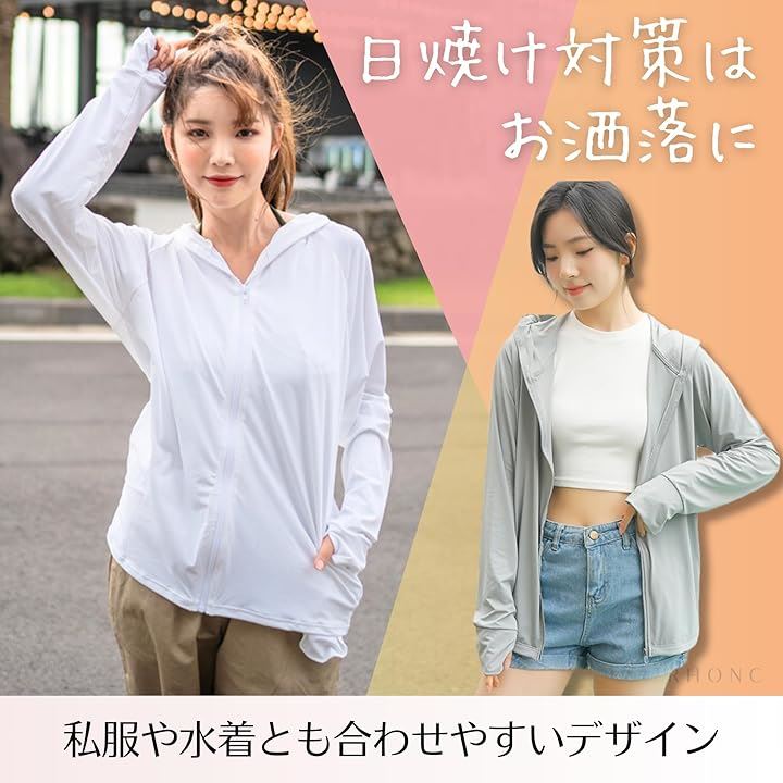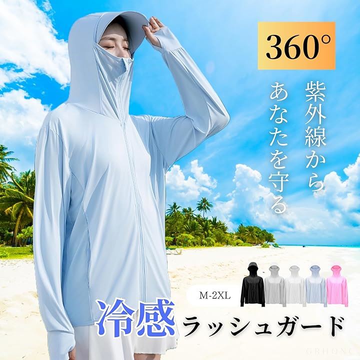[GRHONC] ラッシュガード レディース 水着 UVカット パーカー 長袖 つば付き 顔まで 速乾 冷感 通気性 体型カバー |
