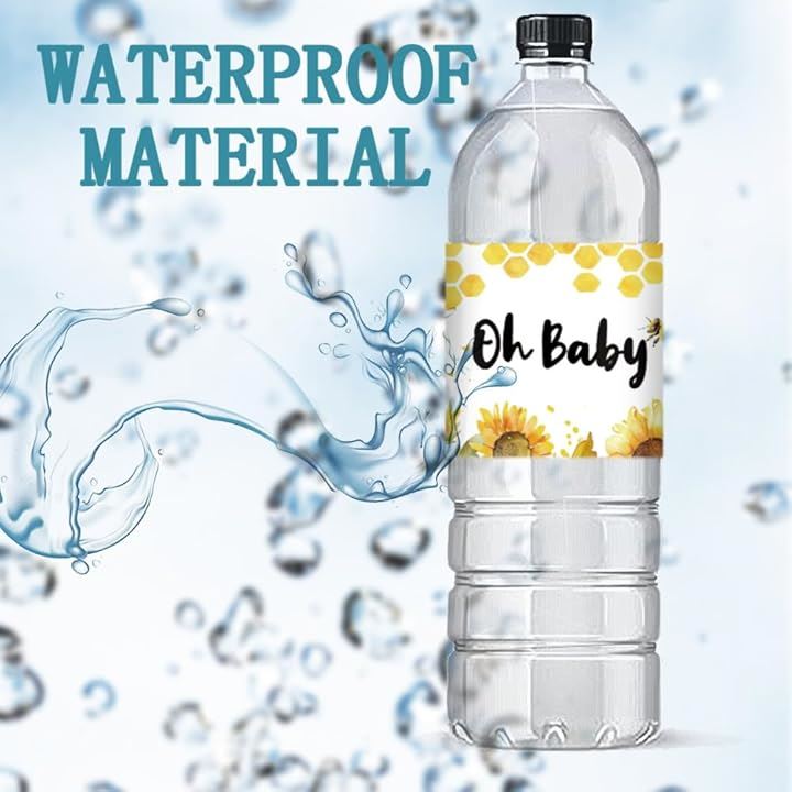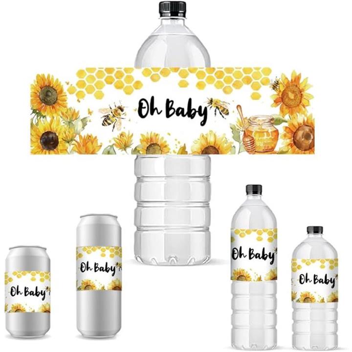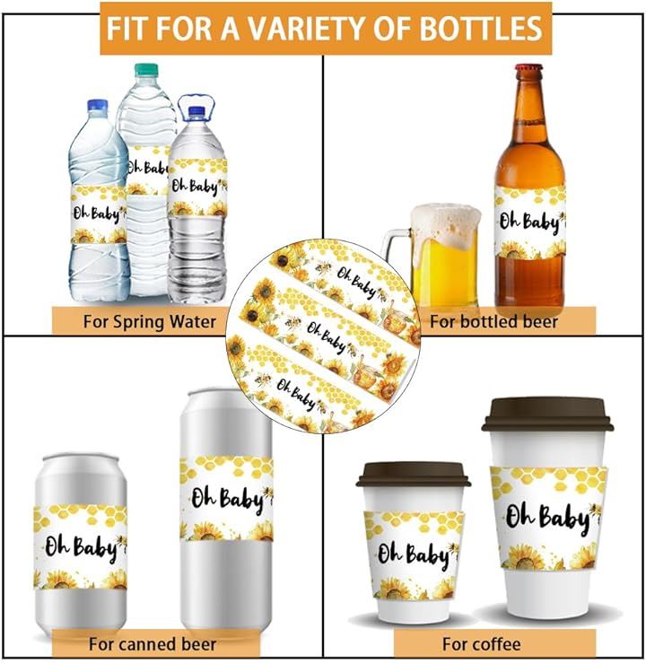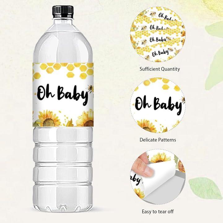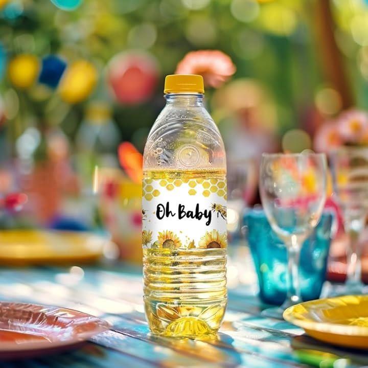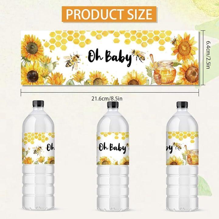蜂 ウォーターボトルラベル 30個 2.5x8.5/21.6x6.4cm ボトルステッカー 装飾 黄色 動物 防水ステッカー ボトルラッパー クリエイティブステッカー ハニカム ボトルラップ 性別お披露目パーティー ベビーシャワー 誕生日パーティーの記念品 飲料水ボトルラベル用