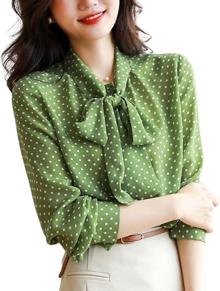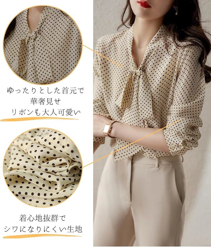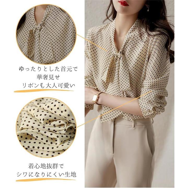 [Dep Club] ボウタイブラウス レディース ブラウス リボン 長袖 ドット柄 きれいめ トップス オフィスカジュアル ボウタイ シャツ 春 秋 夏 |