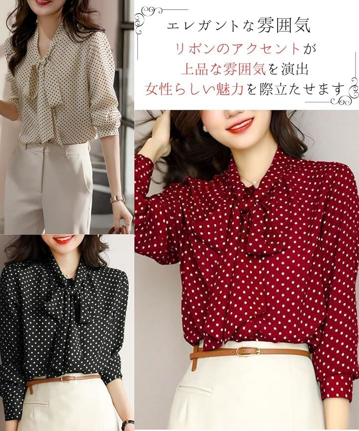 「商品の概要」ボウタイブラウス レディースは、上品で華やかな印象を与えるリボン付きブラウス。