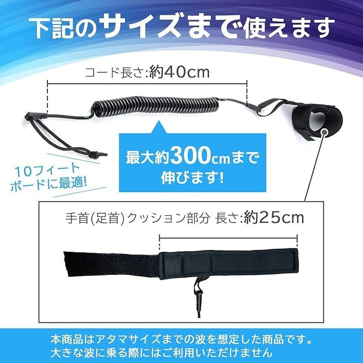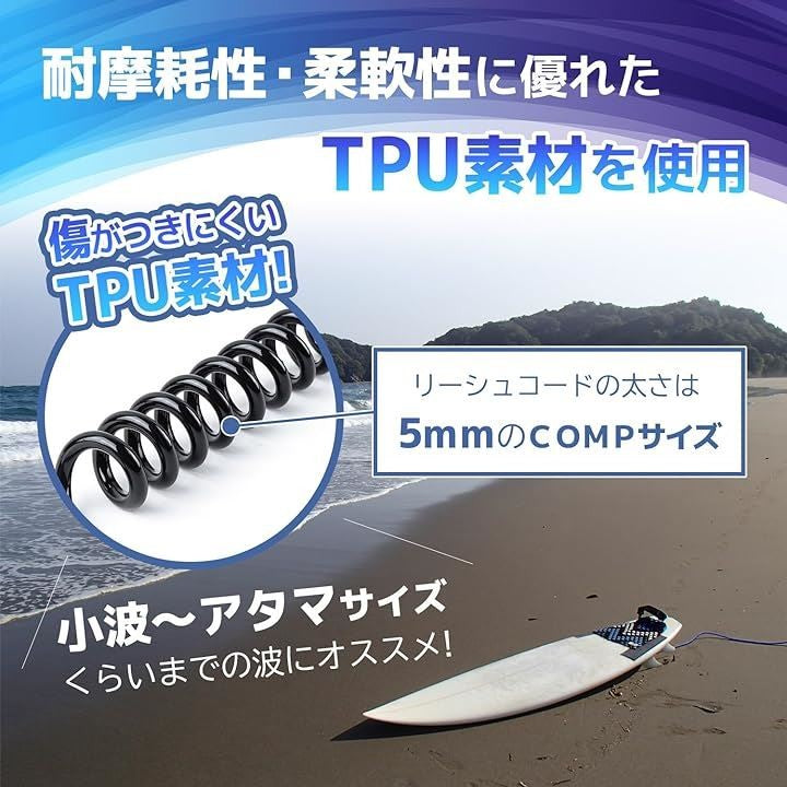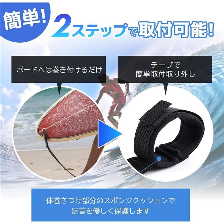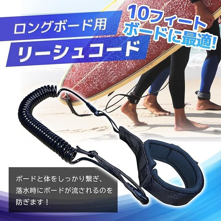 リーシュ コード 10 ft フィート 適合 サーフ ボード サーフィン TPU 素材 耐摩耗 コイル 足首 手首 ブラック 黒