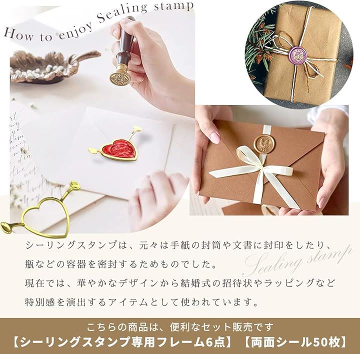 シーリングスタンプ 専用フレーム 6点 セット ヘッド ワックス 両面シール付