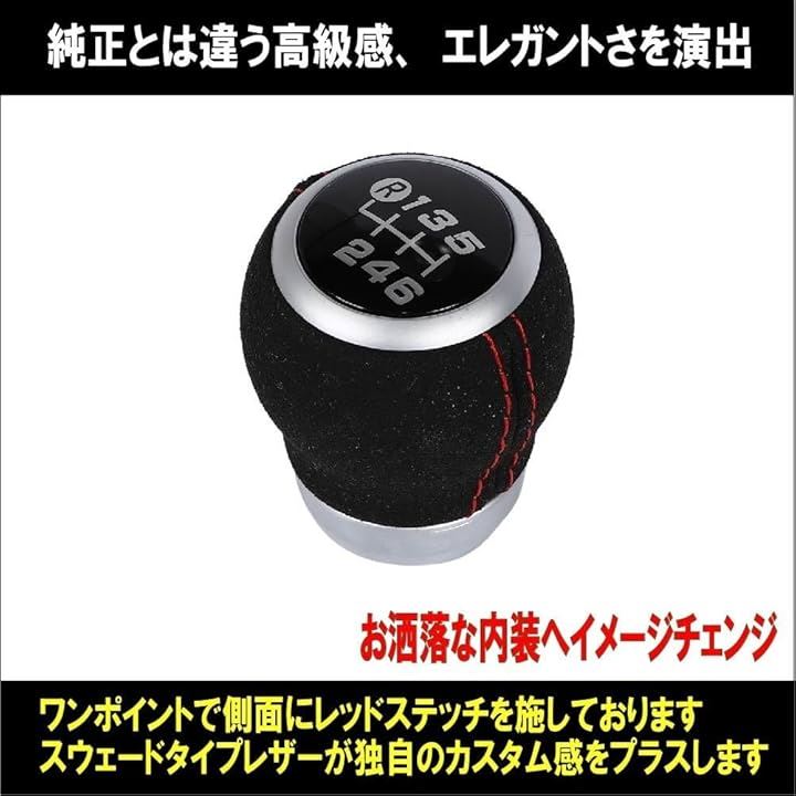 互換品トヨタ 86 ZN6 / GR/GR SPORT スバル BRZ ZC6 等 6速 MT車 スウェード シフトノブ ギアヘッド M12x1.25 ヘッド部 ブラック/レッド 選択可 レッドステッチ エレガント 純正交換タイプ インテリア 内装