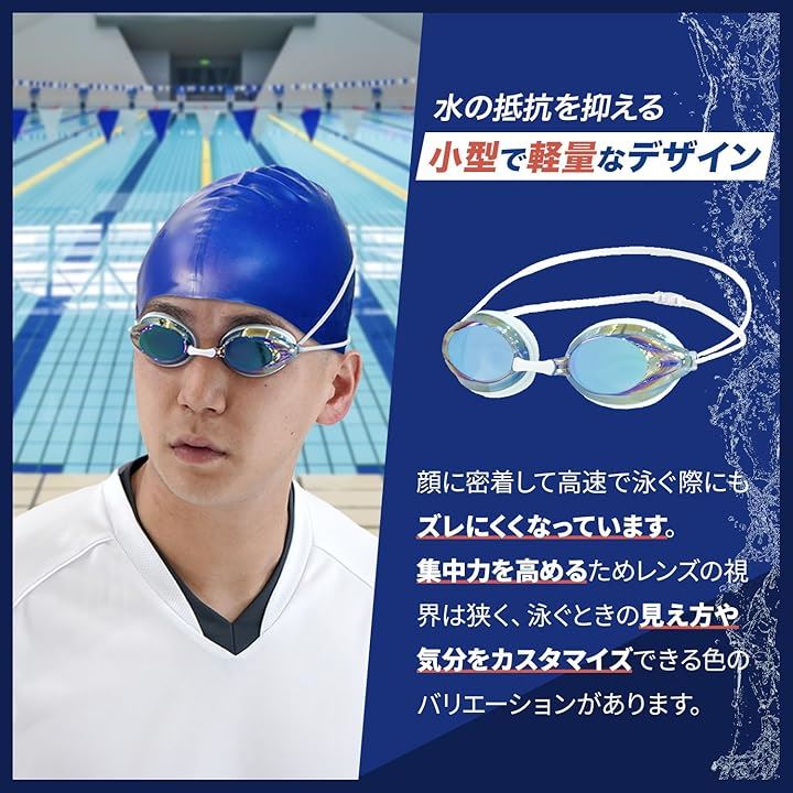 虹のように輝くミラーレンズはスピード感を引き立て、プールが楽しみになるはずです。
