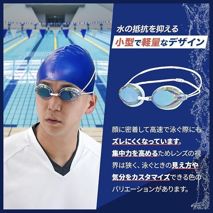 [ONE MORE LIFE] スイミングゴーグル レーサー ミラーレンズあり フィット感 クッション付 フリーサイズ 軽量 曇り止め ケース付き 男女 水泳 フィットネス プール 競泳 スタイリッシュ (ミラーブラック) |
