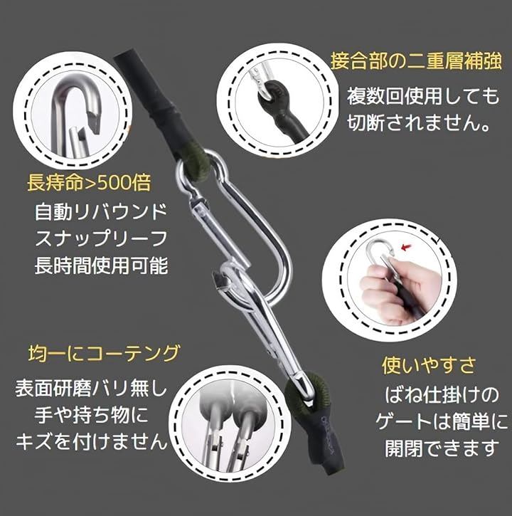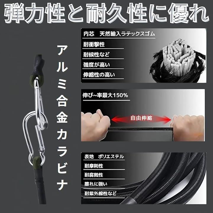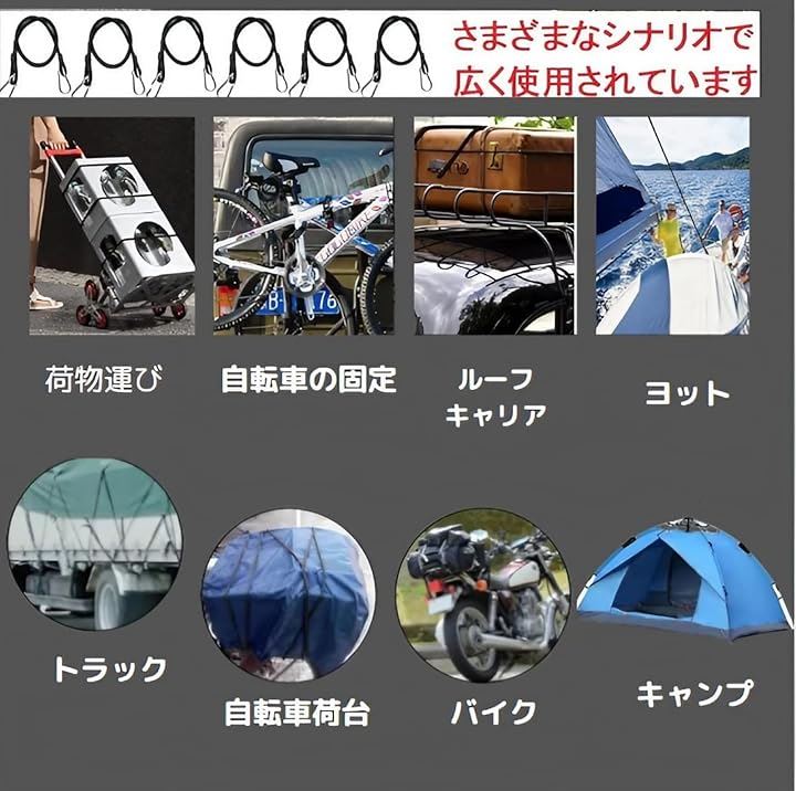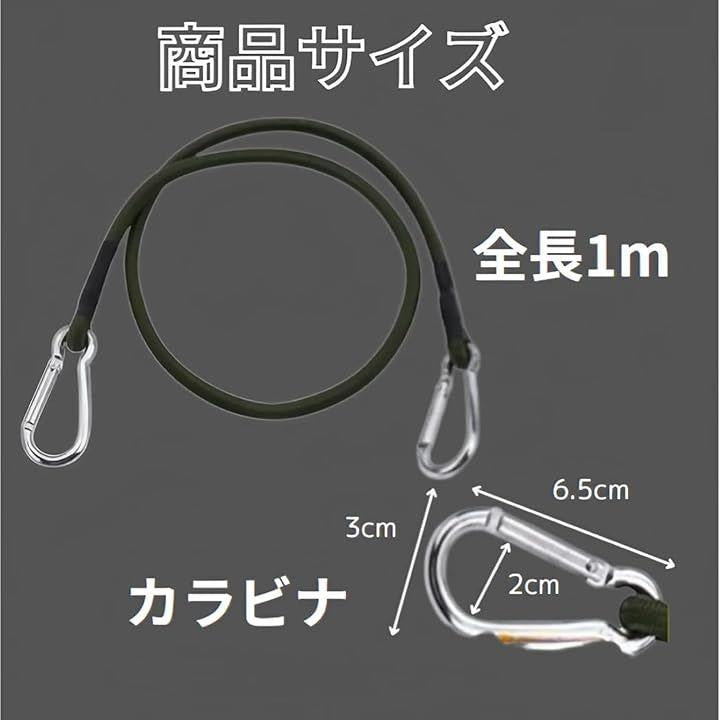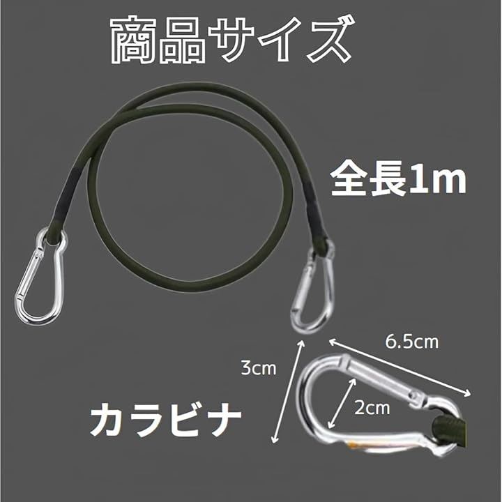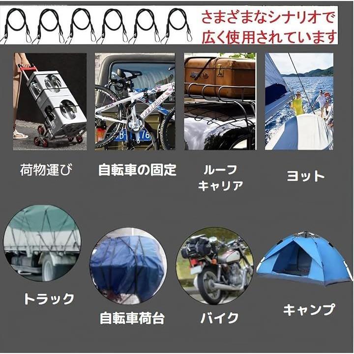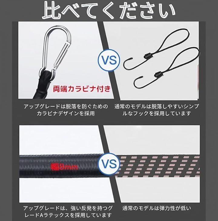 ゴムロープ 自転車 紐 荷台 100cm 幅8mm 6本セット 両端カラビナ付き バイク用 トラック 荷台用 キャンプ用
