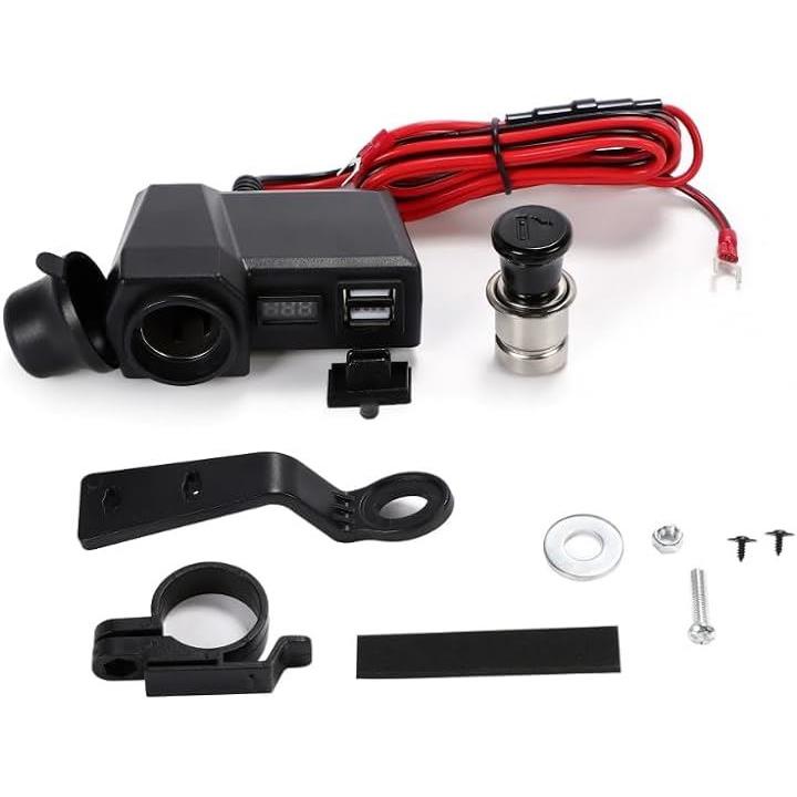 バイク USB 電源 充電器 シガーソケット シガーライター 電圧計 USB端子 Type-A 2ポート 12V 防水 防塵 スマホ