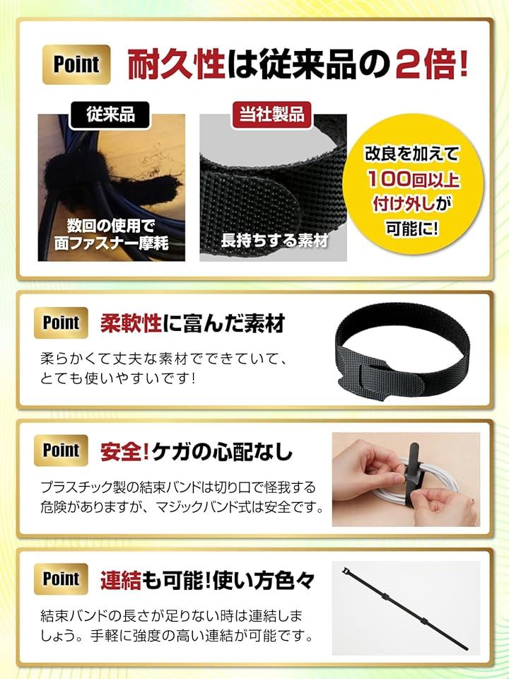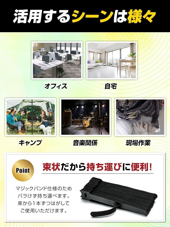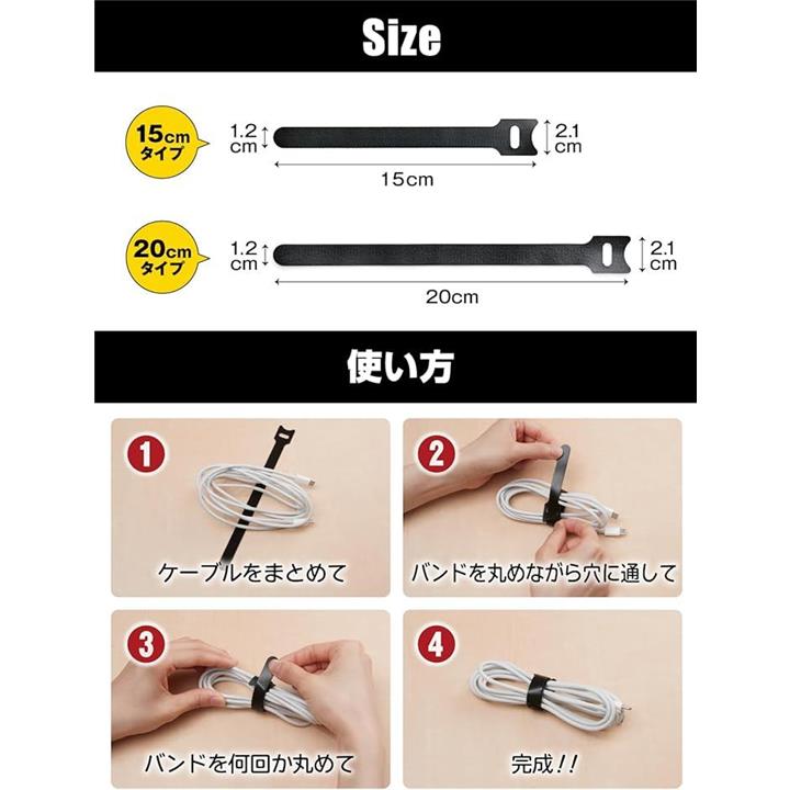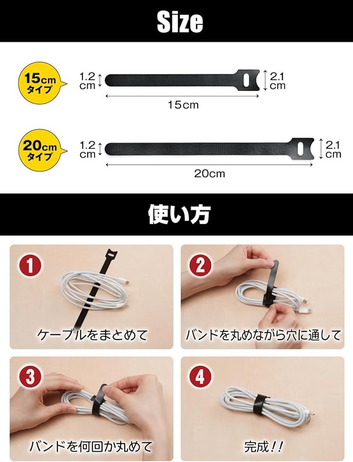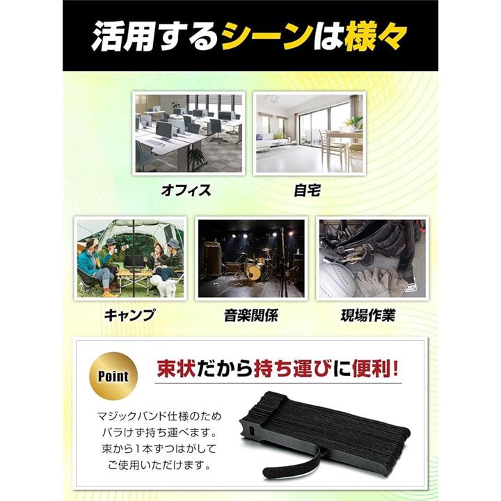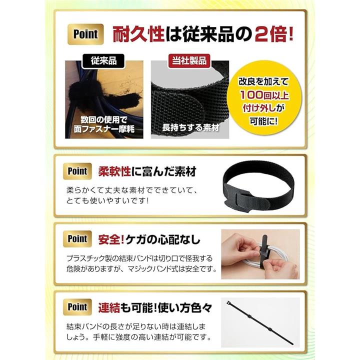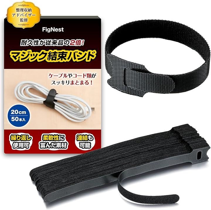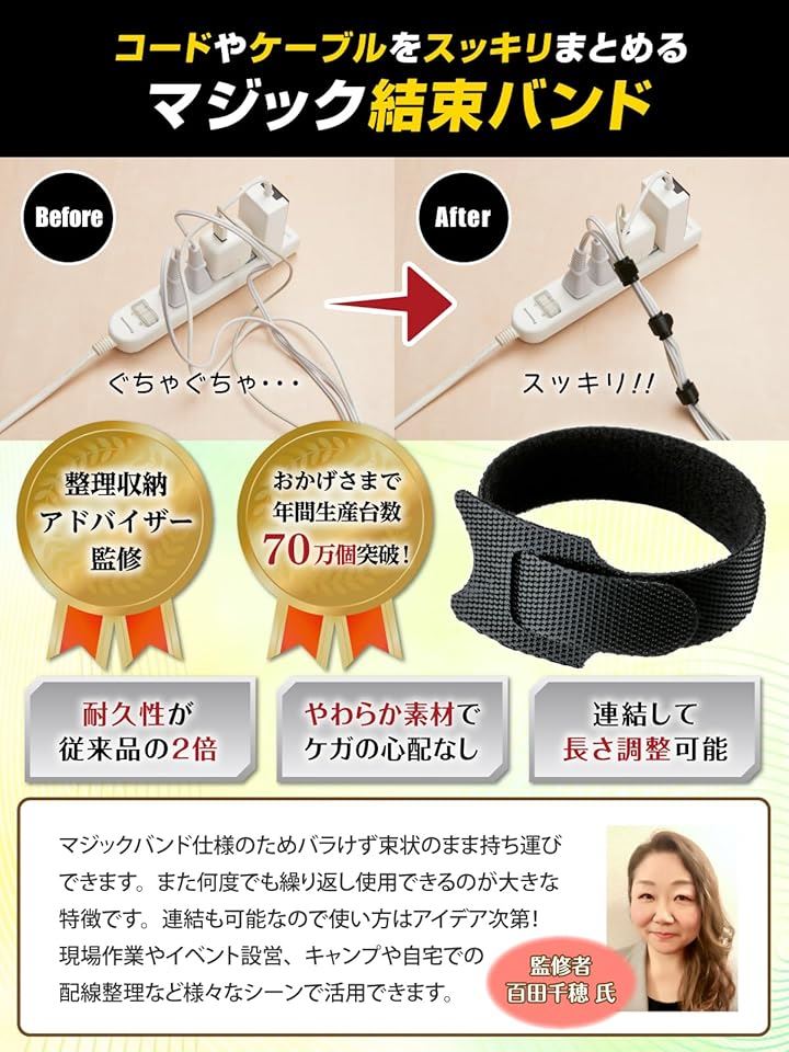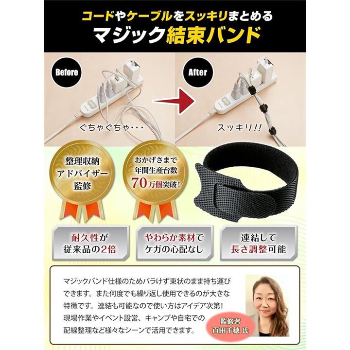 整理収納士監修 結束バンド マジック付きテープ 耐久力2倍。 コード まとめる ケーブルバンド