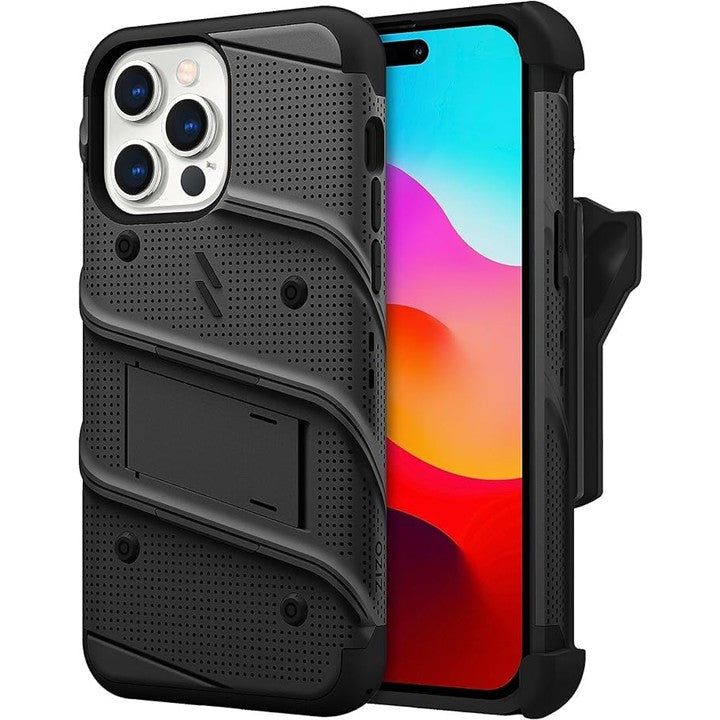 iPhone 15 ケース カバー 耐衝撃 衝撃吸収 米軍MIL規格 キックスタンド ベルトクリップ 機能付 強化ガラス保護フィルム ランヤード 付属