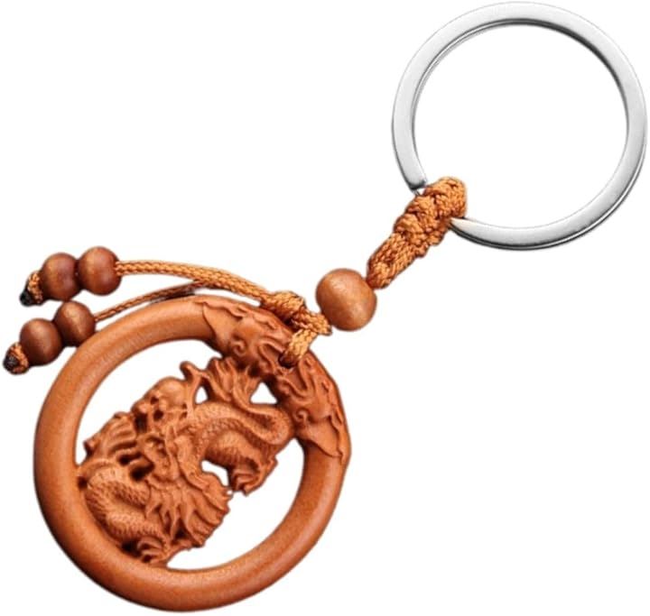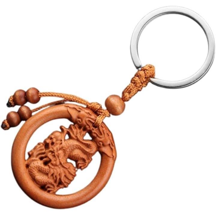 キーホルダー 龍 根付 ストラップ 木彫り 風水 グッツ 金運 天然 木製 根付け 青龍 竜 彫刻 輪