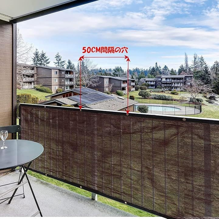 YEZOND ベランダ目隠し 日除けシェード 遮光ネット バルコニー マンション UVカット シェード 50CMごとに3つのロープ穴 |