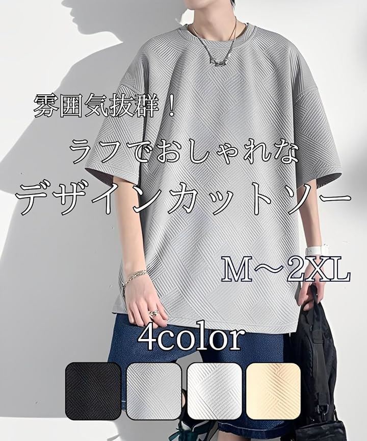 [Four leaf] Tシャツ メンズ 半袖 夏服 半袖シャツ ティーシャツ シャツ 服 おしゃれ クルーネック 快適 カットソー ストリート 夏用 ウェア 無地 エンボス加工 トップス |