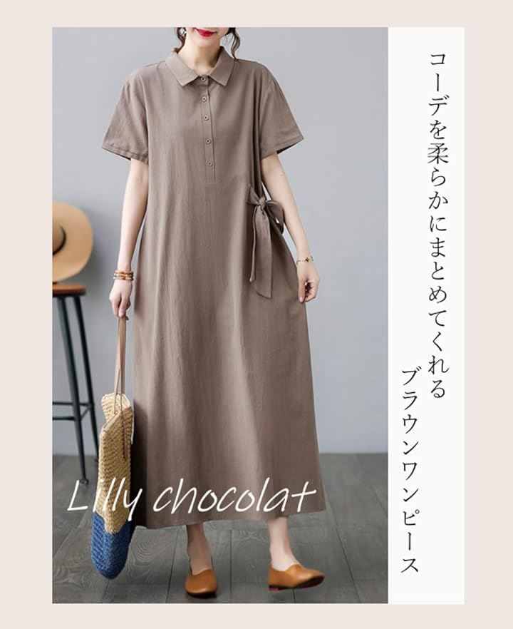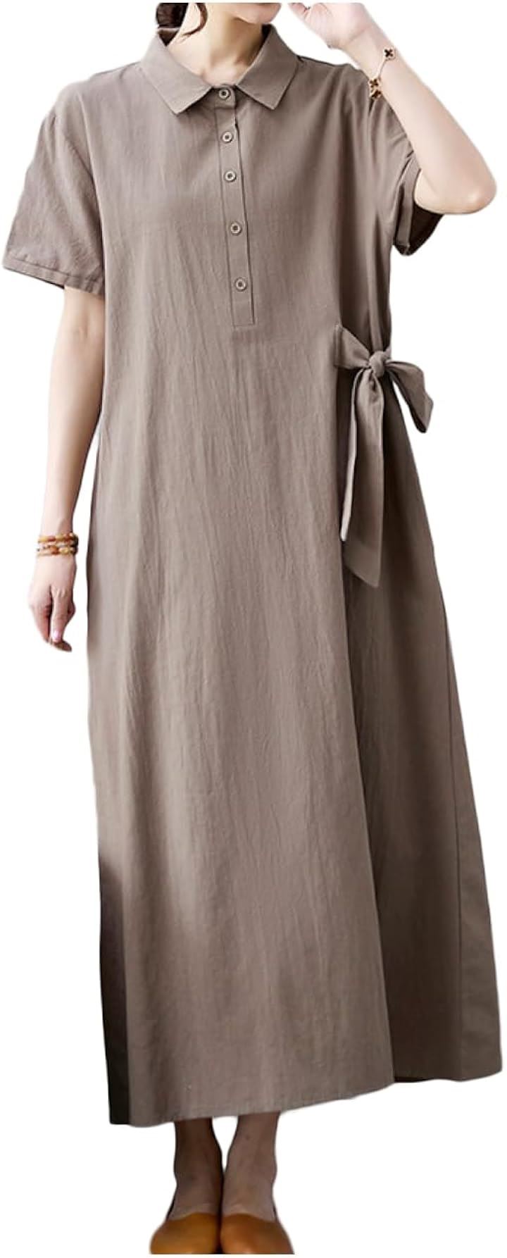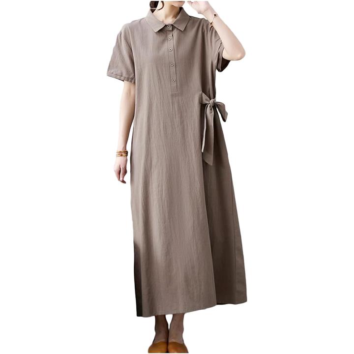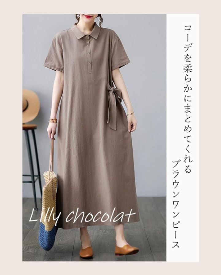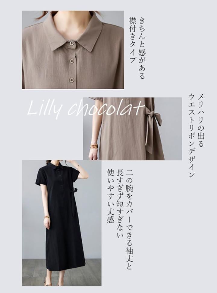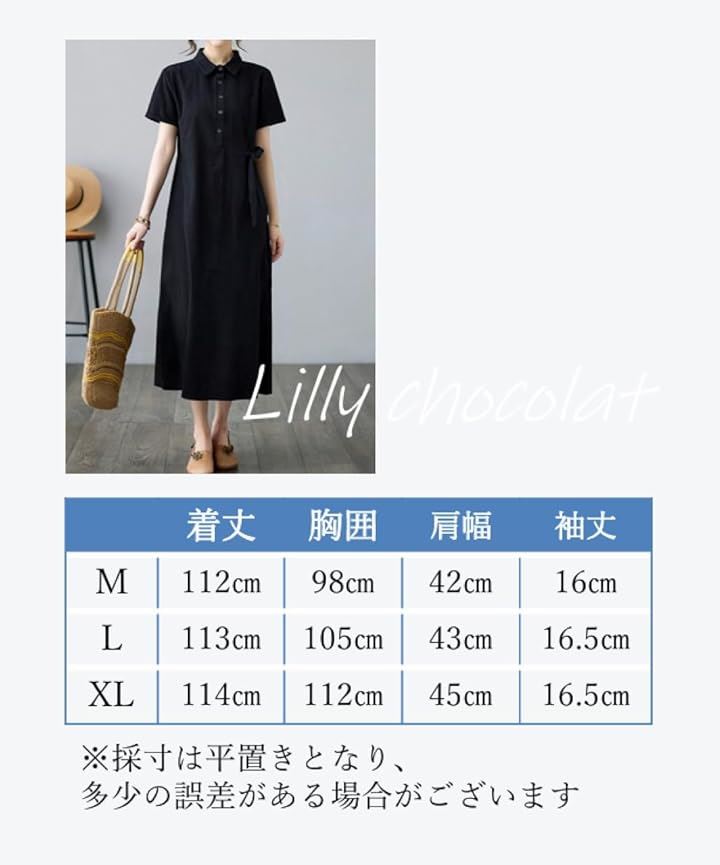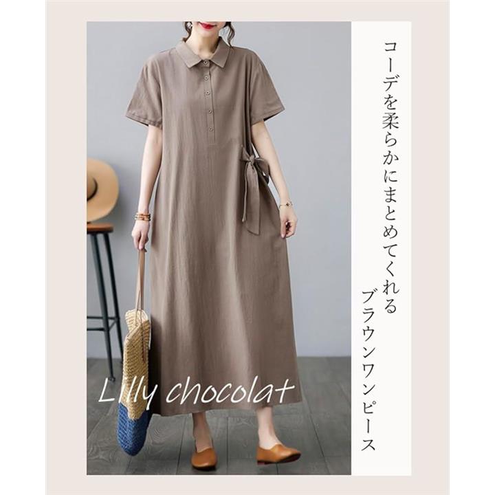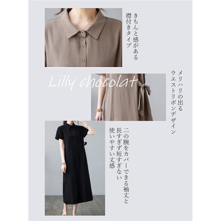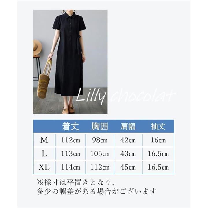 シャツワンピース レディース 半袖 夏 ロングワンピース 襟付きワンピース