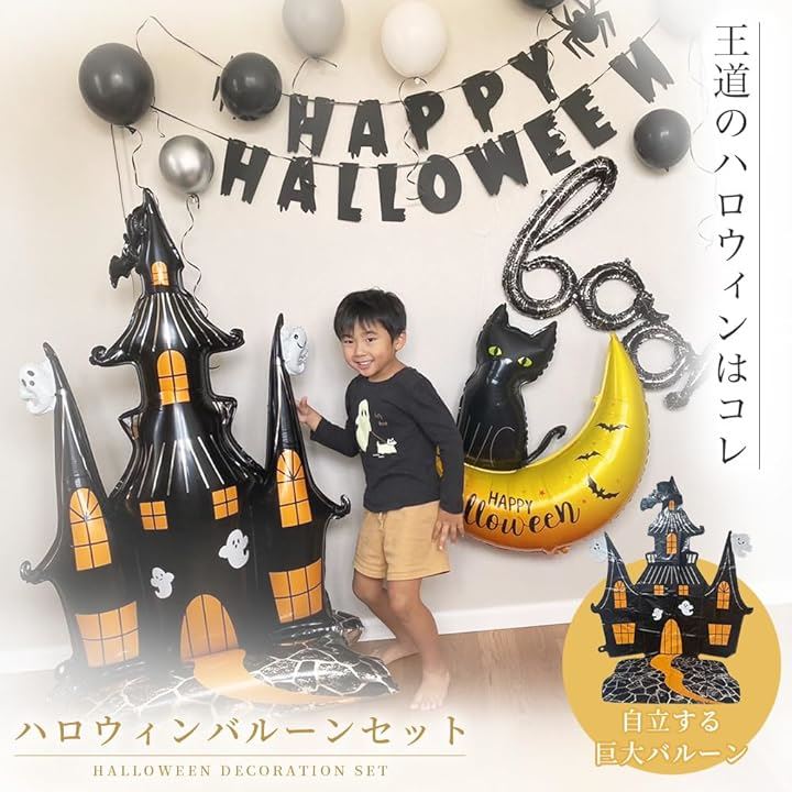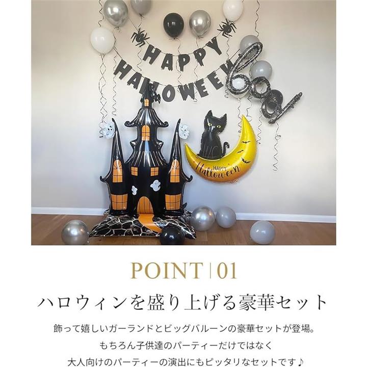 ハロウィン 飾り付け セット 装飾 大きい バルーン 風船 ガーランド 子供 男の子 女の子 猫 Boo Party