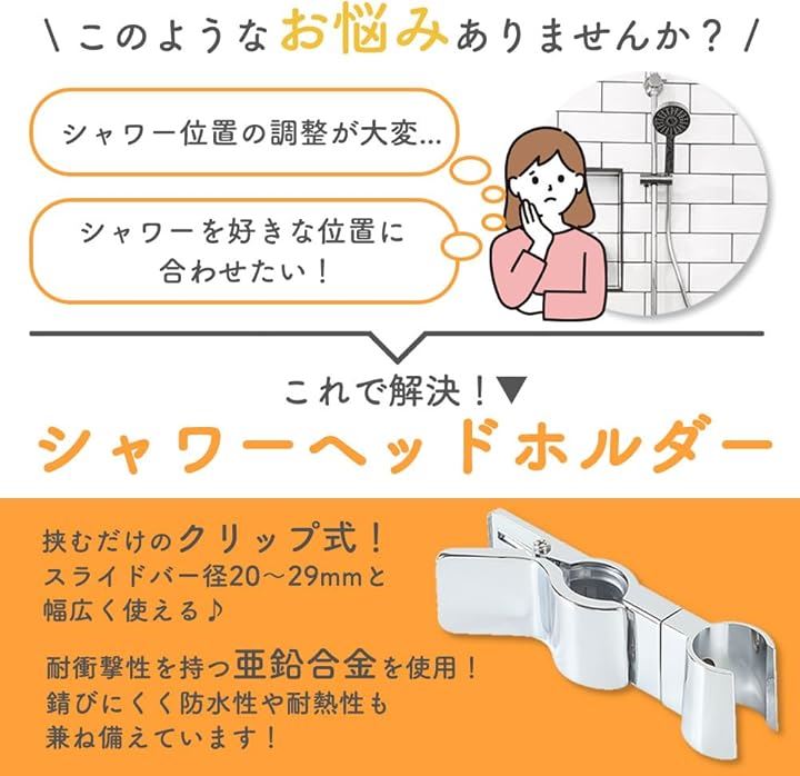 AllBright シャワーフック シャワーヘッド スライドバー 角度調整 高さ調整