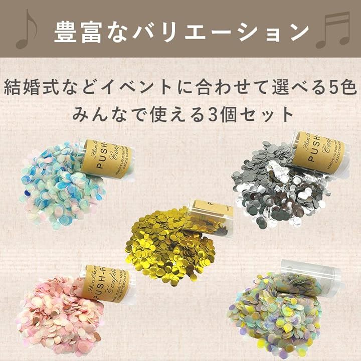 AllBright 紙吹雪 プッシュ式 パーティー ウエディング イベント フラワーシャワー 3個セット