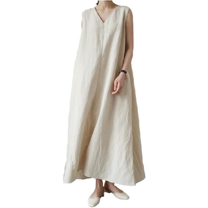 ノースリーブワンピース ロング 夏 vネック ロングワンピース リゾート