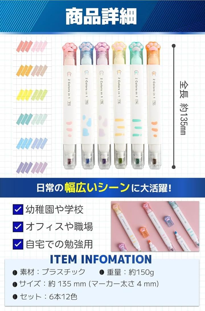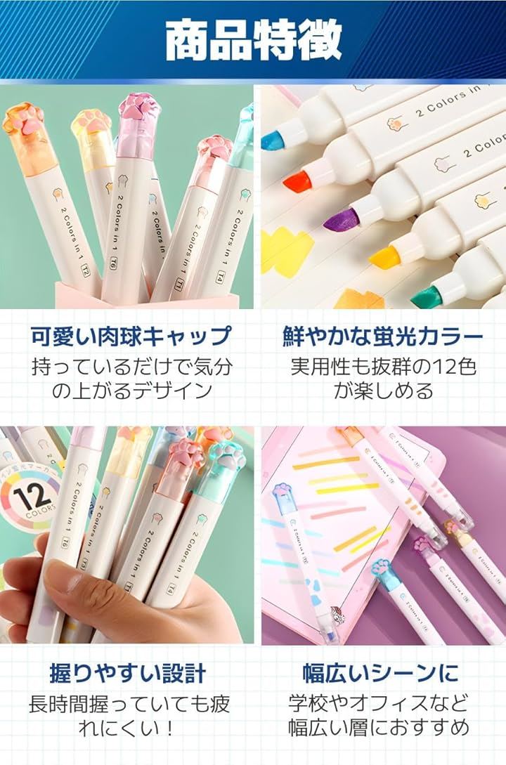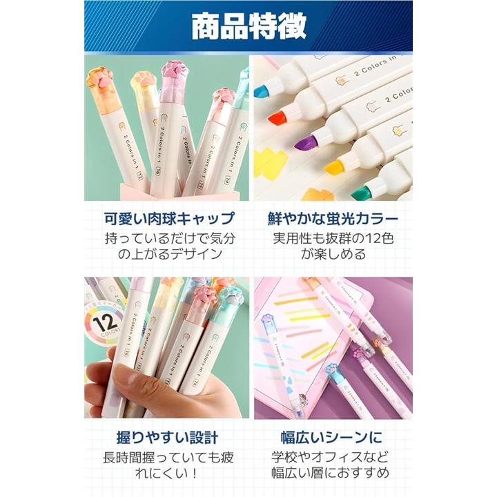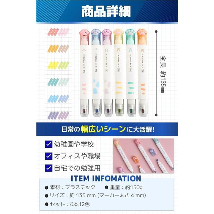 蛍光ペン マーカー ラインマーカー かわいい パステル 文房具 6本12色セット