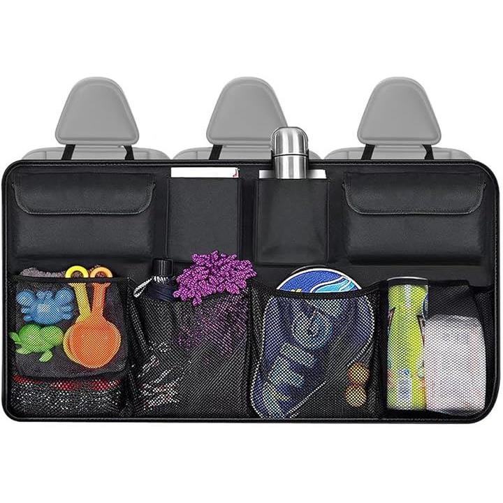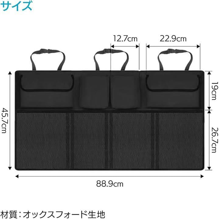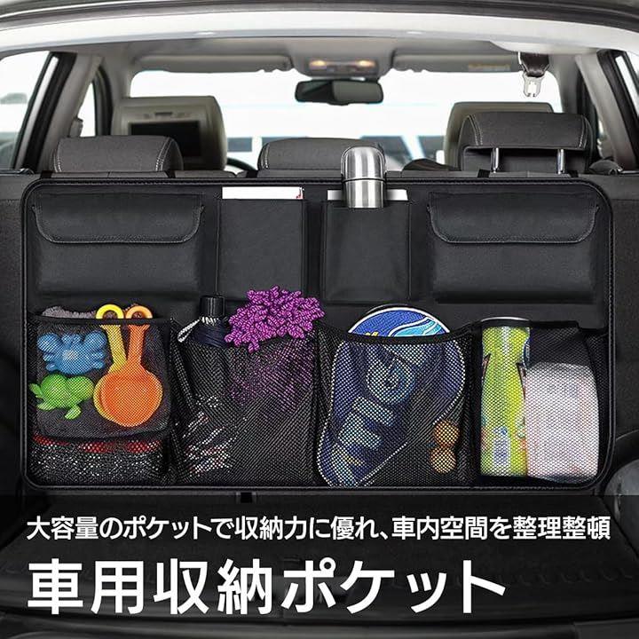 車用 収納ポケット シートバック 大容量 テープ付 ブラック
