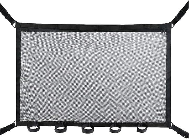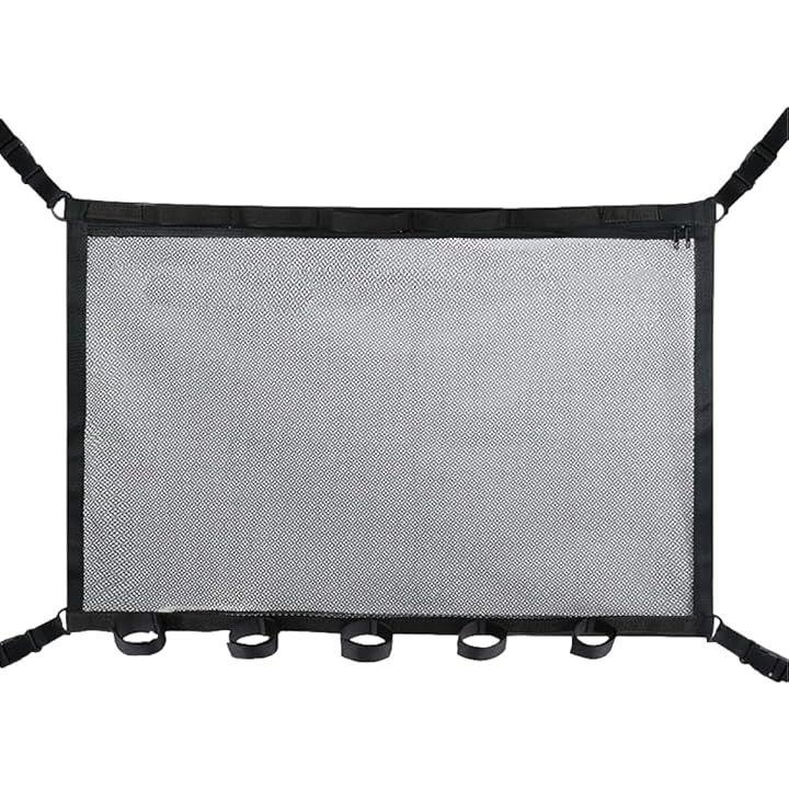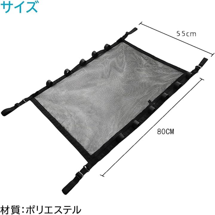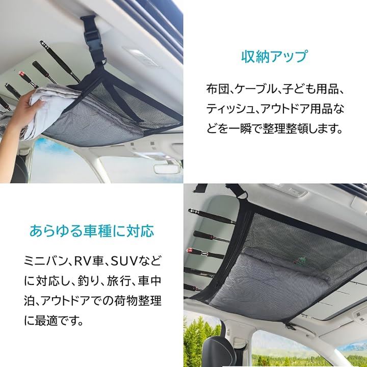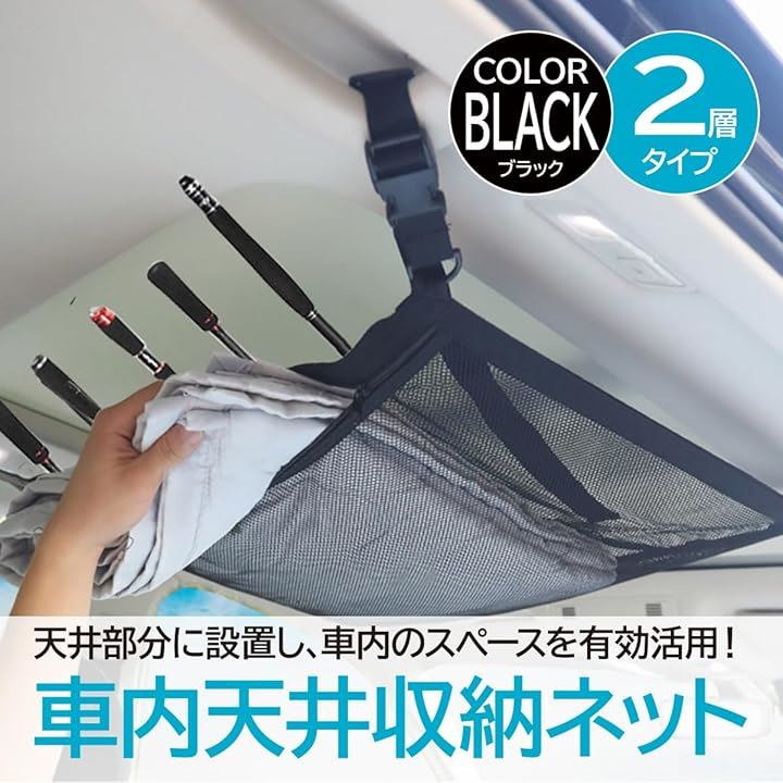 車内天井収納ネット 釣り竿収納 2層タイプ 80x55cm ブラック 調整可能