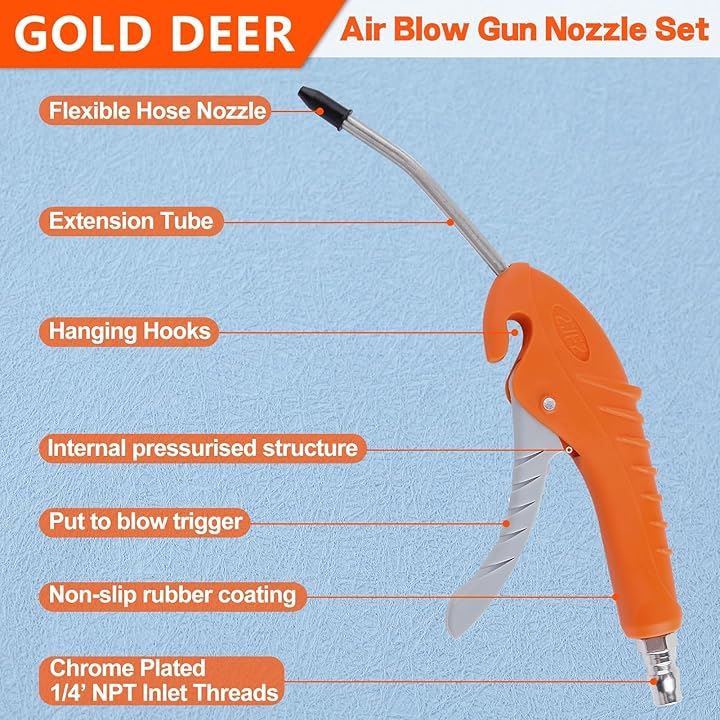 エアブローガン用ノズルセット エアブローガンノズルセット 1/4 NPTレバーブローガンエアノズル エア工具用ダスタ エア・ダスター エアーブローガン エアスプレーガン エアコンプレッサー・アタッチメント エアツール ダスト除去ガン エアーダスター 軽量