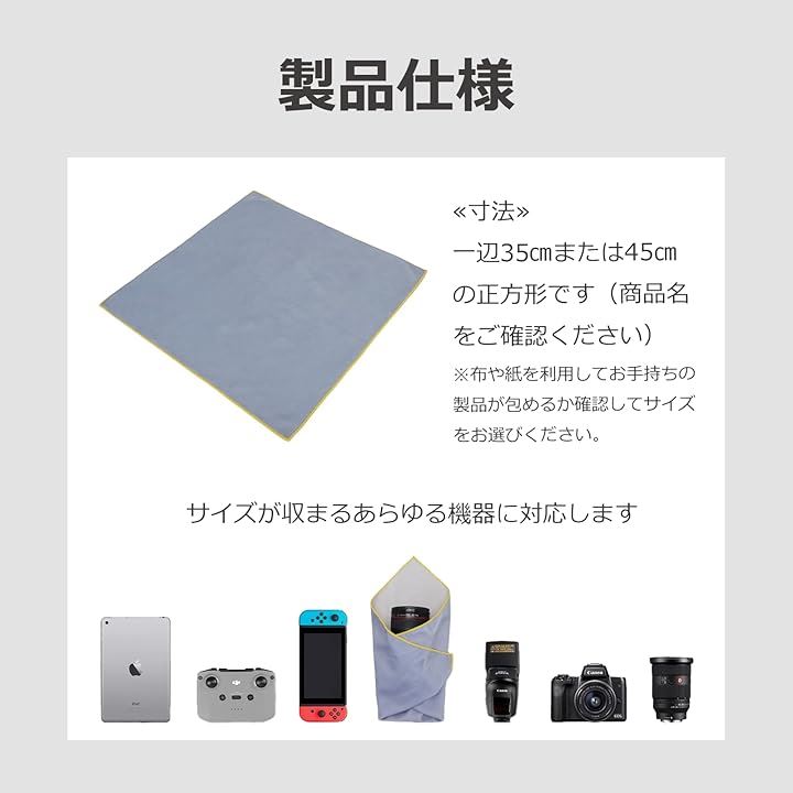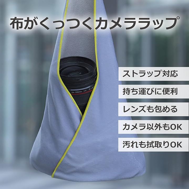 カメララップ くっつきタオル レンズ 保護 カバー 拭取りもできる マイクロファイバー クロス